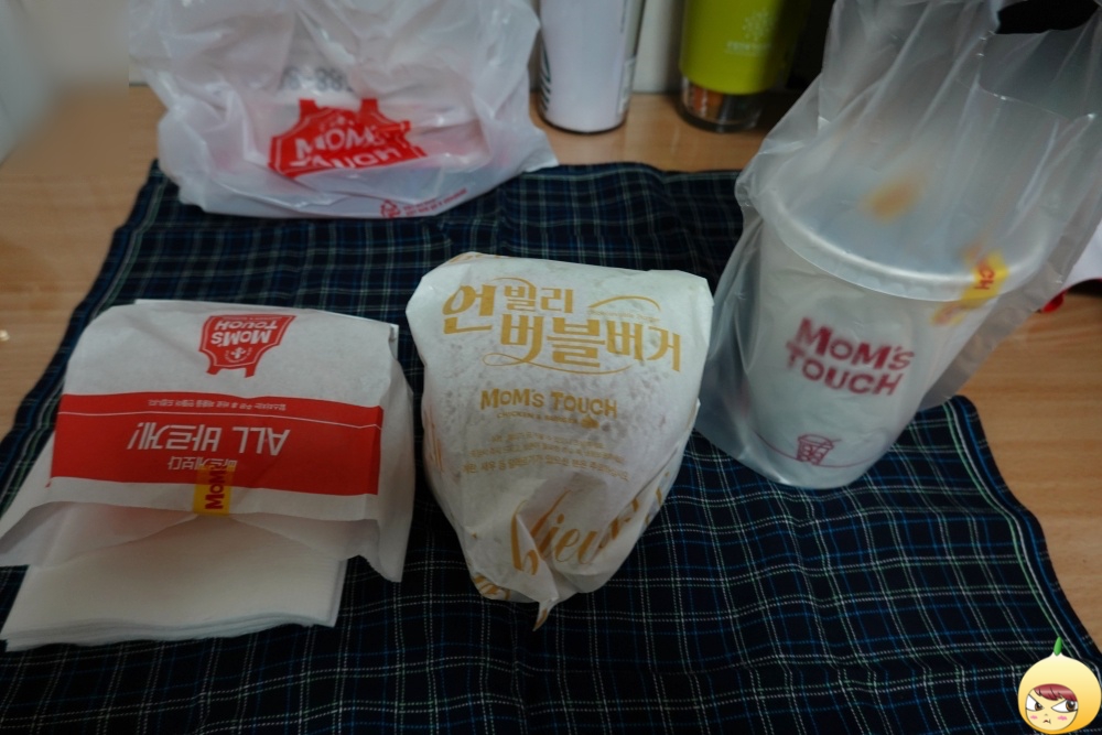 엄마손길 버거는 절대 매장에서 먹지 않는다. 커다란 버거를 와작와작 먹기에 입이 조그맣다. 고로 무지 더티하게 먹게 된다. 집에서야 손에 다 묻히면서 먹어도 되지만, 매장에서는 차마 엄두가 안 난다. 이번에도 역시나 주문을 할 때, 포장이라고 말했다.