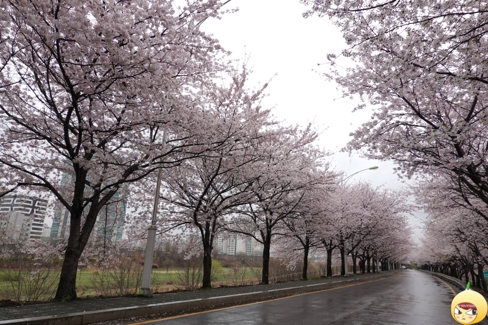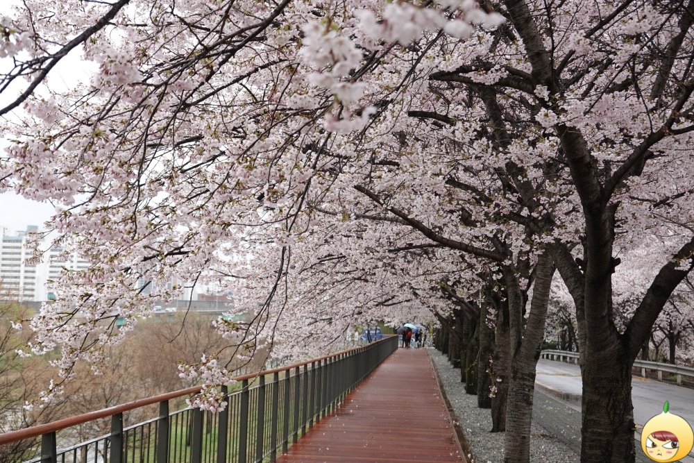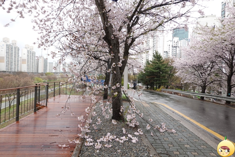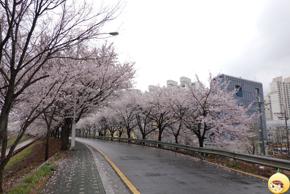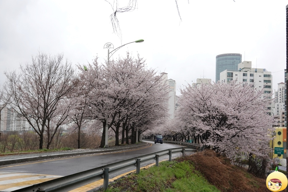 비가 내리지 않았더라면 더 좋았을테지만, 지금도 대만족이다. 신정교로 진입하는 작은 길이지만, 벚꽃이 피면 나만의 벚꽃길이 된다.