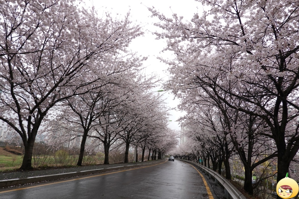 왕복 몇차선이었다면, 매년 봄마다 찾지 않았을 거다. 좁은 찻길 사이로 벚나무가 일렬종대로 있고, 봄이 오면 나무에는 하얀 벚꽃이 흐드러지게 핀다. 가까워도 만날 수 없던 벚나무는 일 년에 한 번 꽃이 되어 하늘에서 만난다. 저절로 시상이 막 떠오른다.