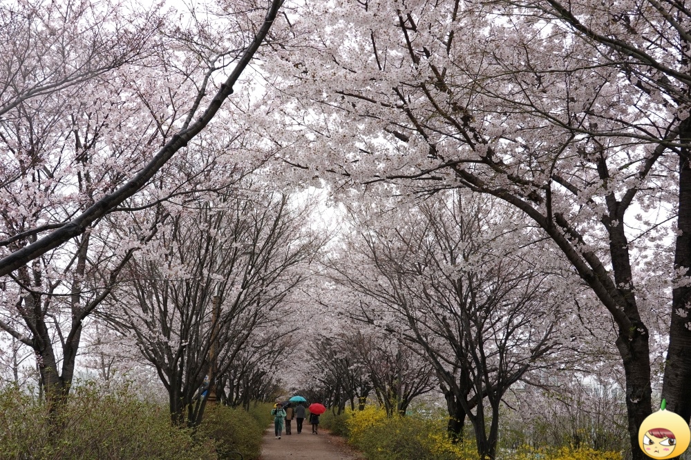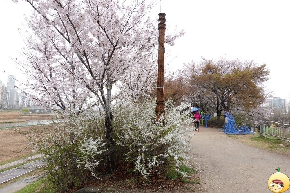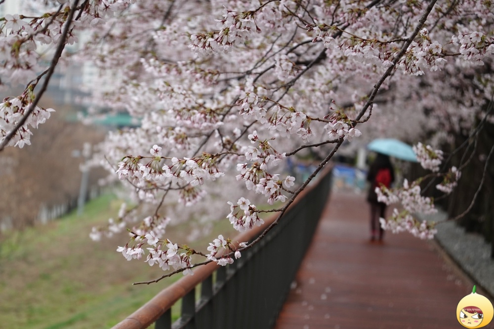 신도림역을 출발해 도림천, 양천구청, 신정네거리, 까치산역을 다니는 지하철이 있다. 2호선으로 불리지만, 이용해 본적은 한 번도 없다. 지하철은 타지 않지만, 집에서 무지 가까운 이웃 동네다. 저 중에서 봄이 오고 벚꽃이 피면 무조건 간다. 3년 전부터 알게 된 곳인데, 매년 봄마다 빼놓지 않고 간다. 그럴만한 이유가 있기 때문이다. 늘 신도림역에 내려 걸어서 갔는데, 올해는 좀 색다르게 오금교에서 출발을 했다. 안양천에 핀 벚꽃도 보기 위해서다. 벚꽃의 천적인 봄비가 내리고 있지만, 약한 빗줄기라 걸을만했다. 봄비 내리는 봄날에 걷는 벚꽃길도 나름 운치 있고 좋다.
