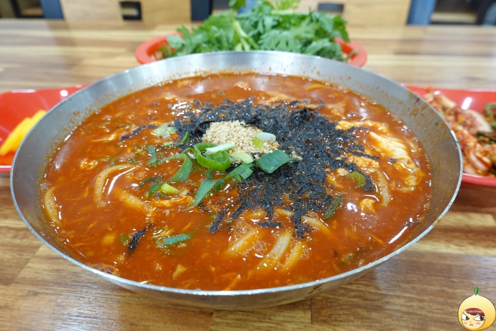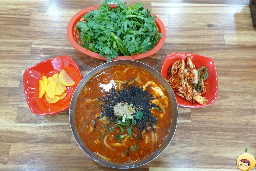 배고픈 사람의 맘을 아는지 우선 양이 어마어마하게 많다. 두부두루치기를 주문할까 말까 많이 망설였는데 안 하길 정말 잘한 거 같다. 힘들 때는 담백보다는 자극이다. 새빨간 얼큰이 칼국수, 비주얼부터 사람을 흥분시킨다. 첫끼로 빨간맛이라 살짝 두렵지만, 침샘은 벌써 대폭발이다. 젓가락부터 들고 바로 공격을 해야 하는데, 그전에 해야 할 일이 있다.