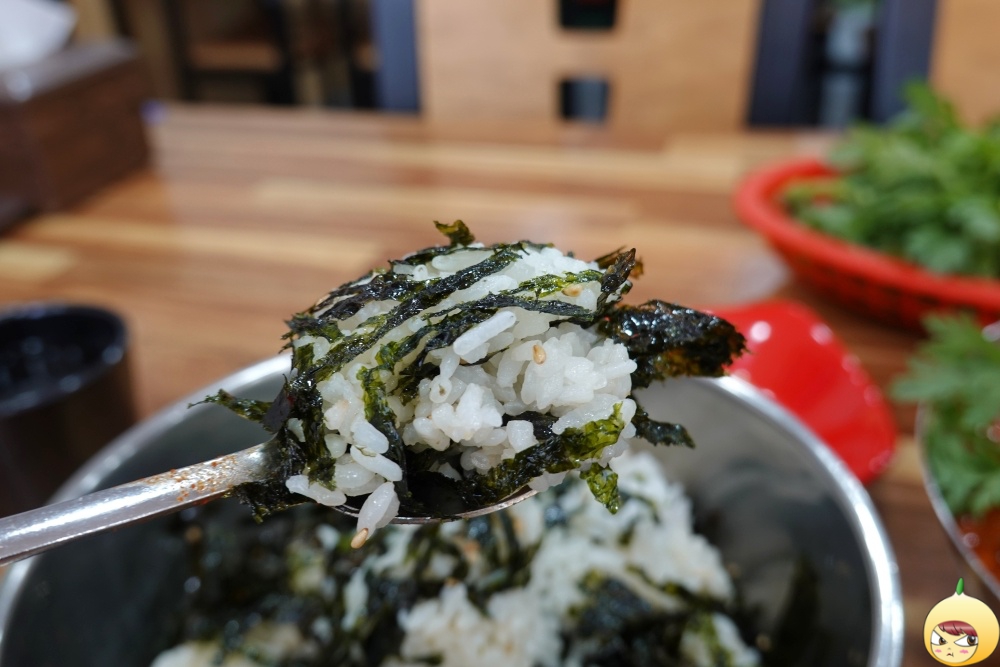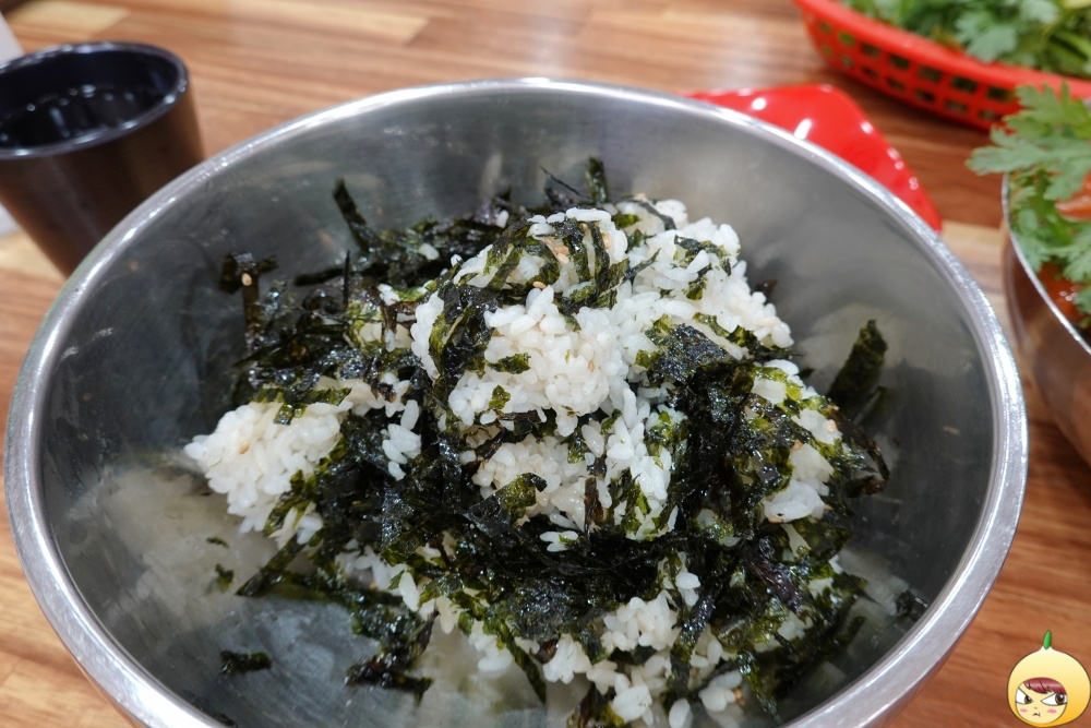 공깃밥이 있지만, 김가루가 푸짐하게 들어간 주먹밥을 주문했다. 직접 만들어 먹는 주먹밥이라고 나와 있지만, 어차피 혼자 먹을 건데 굳이 주먹밥으로 만들 이유가 없다. 그냥 숟가락으로 퍼먹기로 했다. 뜨거운 흰밥에 김가루만 들어갔을 뿐인데. 무지 맛나다. 매운 칼국수를 먹은 후라 그런지, 밥이 술술 들어간다.