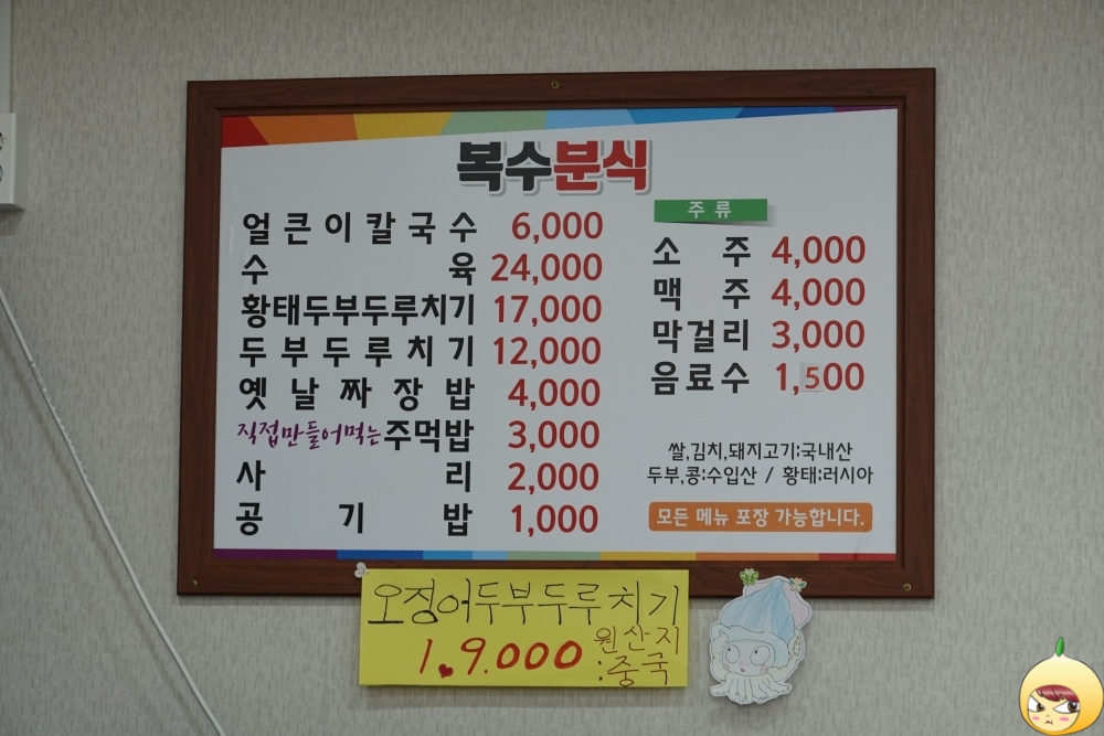 두부두루치기와 칼국수를 먹고 싶으나, 다 먹을 자신이 없다. 다른 곳이지만 두부두루치기는 작년에 먹었으니, 올해는 칼국수다. 빨간맛 국수에 쑥갓이 듬뿍 들어간 얼큰이 칼국수. 드라마 '내 멋대로 해라'가 생각나는 대전에 있는 복수분식이다.