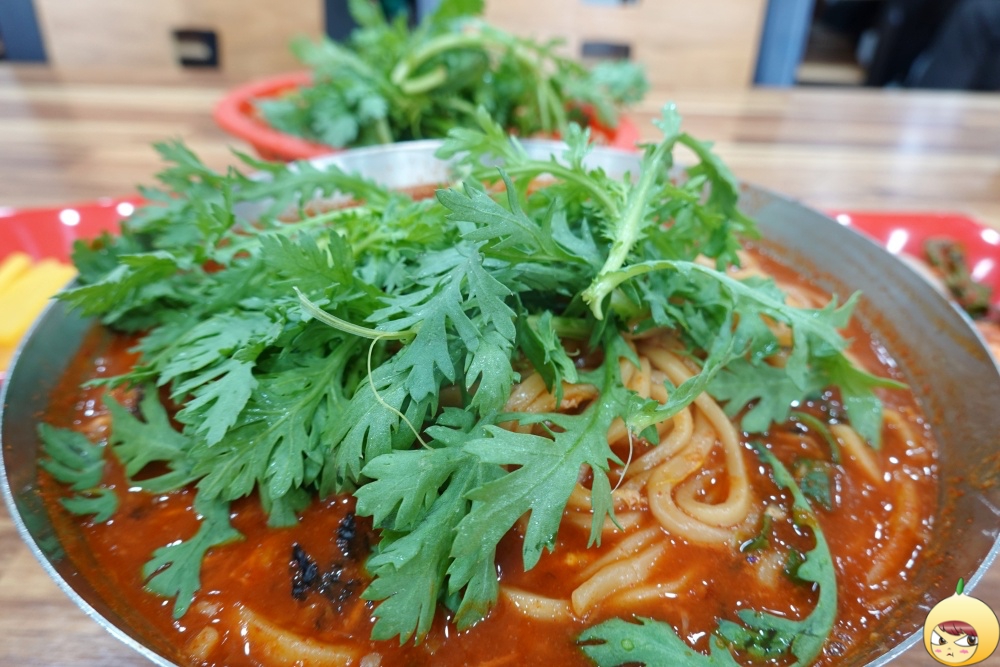 매운데 뜨겁다. 매운맛은 주먹밥에게, 뜨거운 맛은 앞접시에게 맡기면 된다. 덜어서 후루룩 후루룩~ 지금은 칼국수를 먹는 중이다. 쑥갓은 먹을 때마다 조금씩 넣는다. 그래야 향이 더 난다.