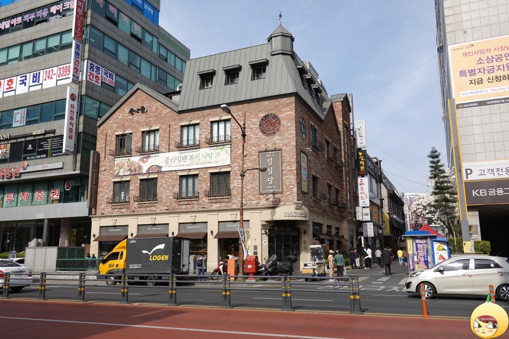 늘 대전역에서 성심당 방향으로 걸어왔기에, 성심당 케익부띠끄가 있는지 처음 알았다. 대전근현대사전시관에서 대전역 방향으로 걸어오는데, 성심당 건물이 보였다. 으능정이 문화의 거리 중간쯤에 성심당(본점)이 있었는데, 여기는 대로변이다. 최근에 안 좋은 기사가 나서 이전을 했나 했는데 아니다.