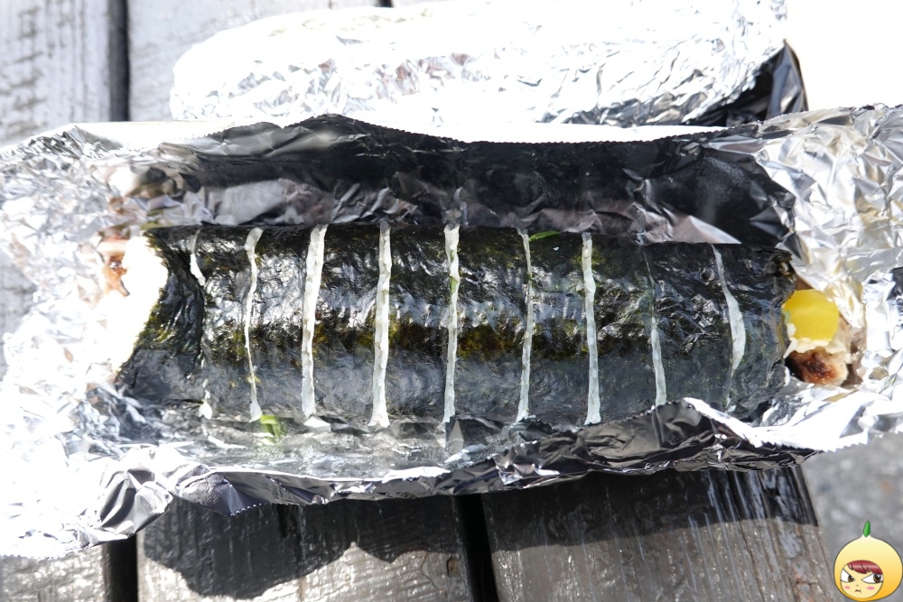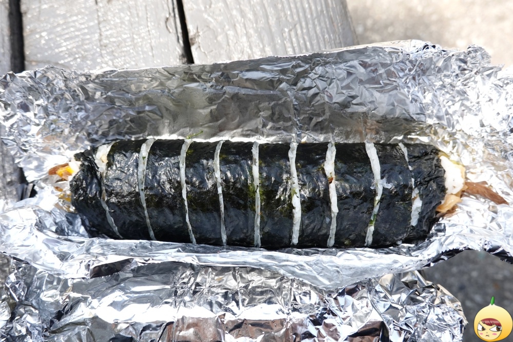 크기 비교. 확실히 떡갈비가 크다. 하지만 개인 취향은 오징어 김밥이다. 포스팅을 하지 않았다면, 오징어 김밥만 샀다. 떡갈비 김밥은 먹다 보면 살짝 물린다. 역시 혼자서 두 줄은 무리다. 오징어 김밥만 다 먹고, 남은 떡갈비는 다시 포장해서 저녁에 먹었다. 포스팅을 했으니, 앞으로는 오징어김밥만 먹을 예정이다.