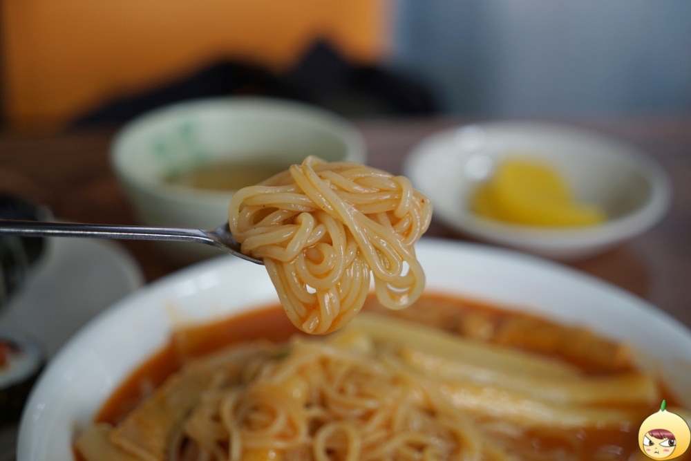 진하디 진한 양념에 치즈, 소시지 요즘은 치킨까지 들어있는 떡볶이가 있다는데, 떡볶이란 음식의 초창기 모습이 아닐까 싶다. 길쭐한 밀떡에 조그만한 넙데데 오뎅 그리고 고추장은 매운맛이 아니라 색감으로 사용한 듯하다. 쫄볶이대신 떡볶이를 주문할 걸, 쫄면으로 인해 떡볶이 양이 너무 적다.
