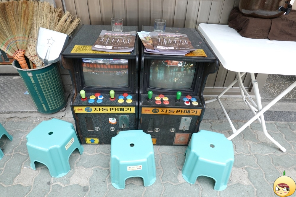 요즘에도 이런 게임기가 있다니, 어릴적 손맛을 기억하고 있는 남성분들은 여기를 지나치지 못한다. 난 겜알못이라 가볍게 지나쳤다. 입구가 좁은 건, 주방이 있기 때문이다. 입구 앞에 있는 생수통에는 호박식혜가 들어있다. 이벤트 기간에는 무료로 마실 수 있다.