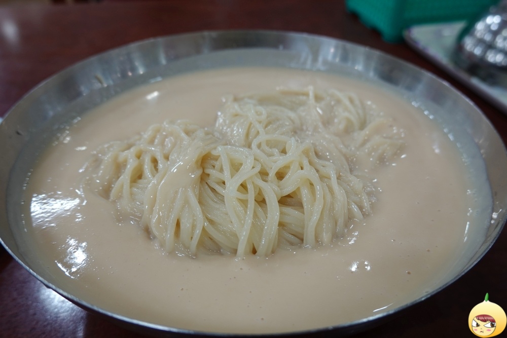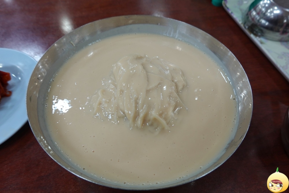 옆테이블에서 직원이 콩국수를 내려놓기 무섭게 가위질을 하는 걸 봤다. 자고로 냉면이나 국수에 가위는 노땡큐다. 잠시 후, 직원이 왔고 역시나 국수를 내려놓기 무섭게 가위를... 그순간 곧바로 "자르지 말아주세요"라고 말했다. 그렇게해서 면발을 지켰는데, 괜한 짓을 했구나 싶다. 왜냐하면 국수 찰기가 함흥냉면스럽다.