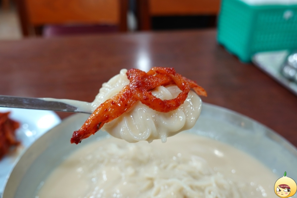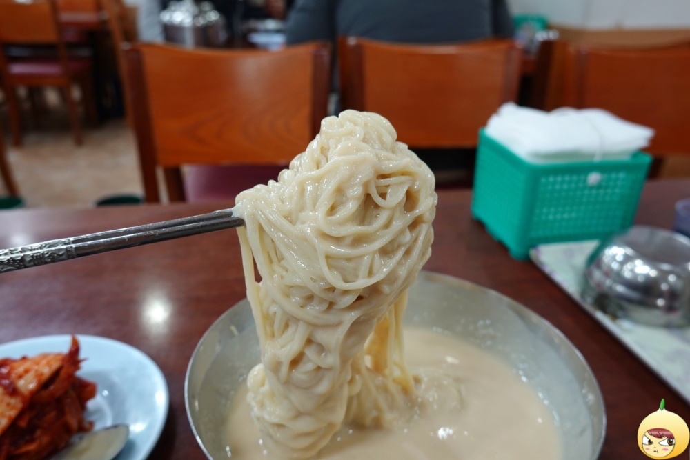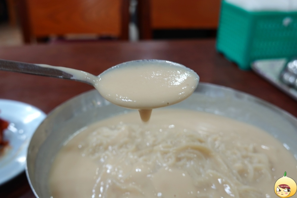 콩물을 한숟갈 떴는데, 오호~ 이건 콩물이 아니다. 흐르는게 아니라 툭툭 끊어진다. 진하디 진한 콩물의 맛은 과함이 없고 완벽하게 적당하다. 콩 비린내는 전혀 없고, 부드러움 속 단맛과 짠맛, 고소한맛이 적절하게 조화롭다. 콩국수계의 지존답다.