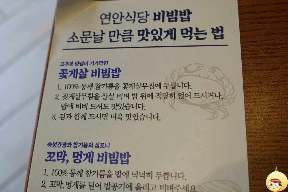 겨울에는 꼬막비빔밥, 봄에는 꽃게살 비빔밥이다. 발라 먹기 귀찮아 멀리했는데, 게살만 나온다니 아니 갈 수 없다. 제철에 맛보는 서해 자연산 꽃게, 벌써부터 침샘폭발이다. 용강동에 있는 연안식당 마포점이다.