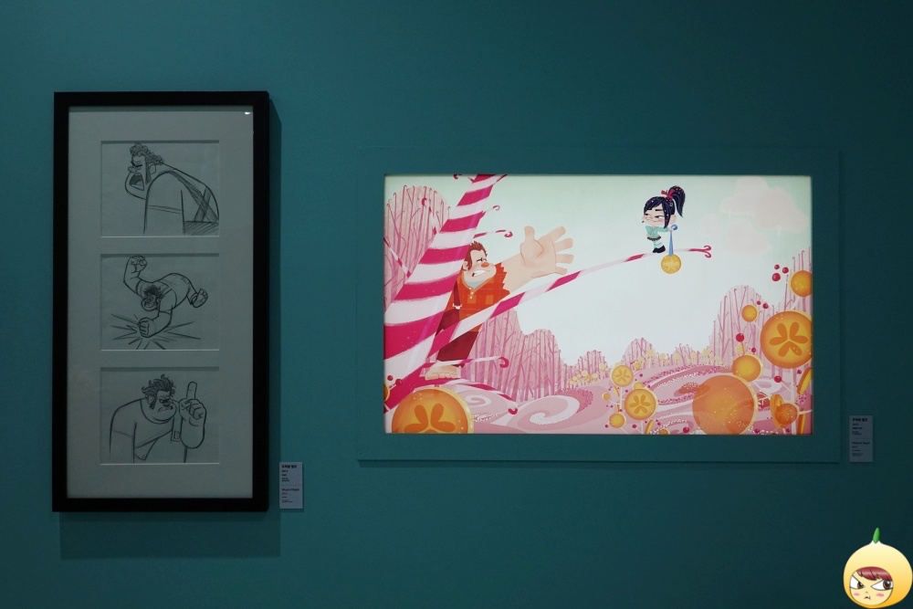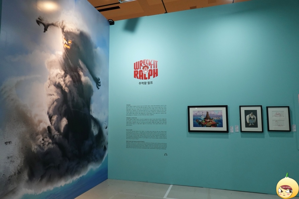 특별전의 마지막은 주먹왕 랄프2다. 오른쪽 컴컴한 곳은 디즈니 만화를 만드는 사람들의 이야기를 볼 수 있는 곳이다. 인터뷰 형식이라서 굳이 딱히 처음부터 끝까지 볼 필요는 없다.