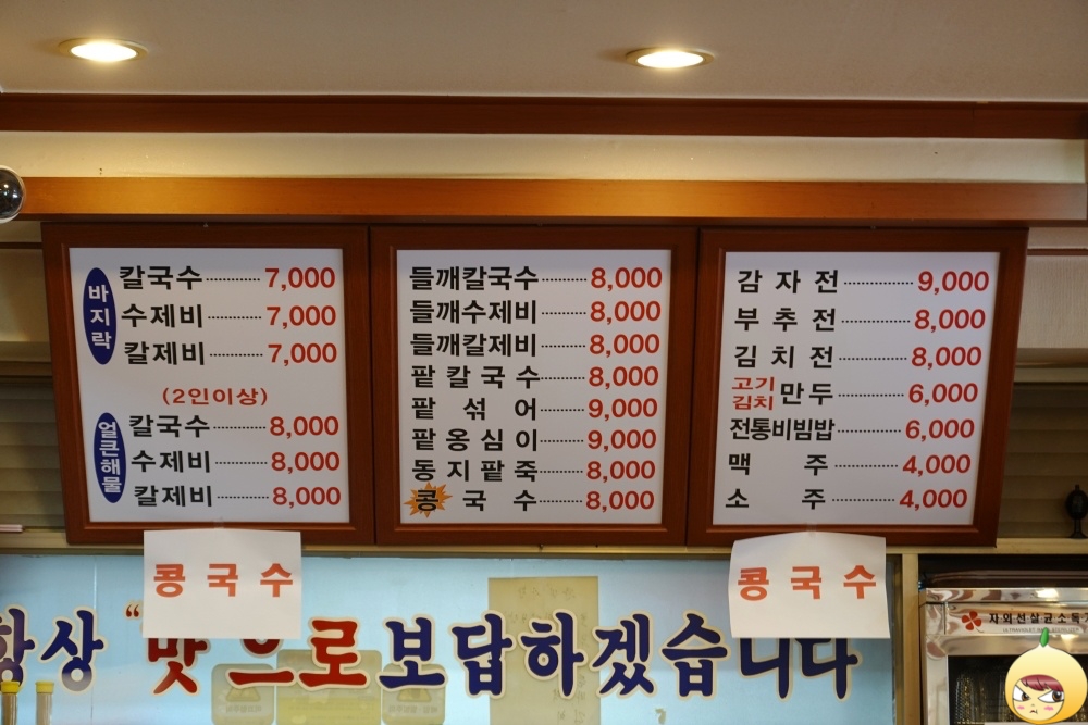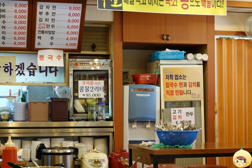 지난 겨울에 왔을때는 떡만두국이 써있는 큼지막한 배너가 있었다. 여름이 왔다고, 뜨거운 국은 사라지고 콩국수가 떡하니 한자리를 차지했다. 그나저나 콩국수는 왜 여름에 먹을까? 가장 큰 이유는 시원함 때문일 것이다. 그 외에도 콩이 갖고 있는 영양분이 여름에 먹으면 더 좋다거나, 콩으로 만든 음식은 차게 먹어도 배탈이 나지 않는다는, 뭐 이딴 좋은 이유도 있을 거 같은데, 전문가가 아니니 패스. 생각해보니, 콩국수를 먹고 배탈이 났던 적은 없었던 거 같다. 암튼, 여름에 콩국수를 먹는 데에는 그나름의 좋은 이유가 있을 것이다.
