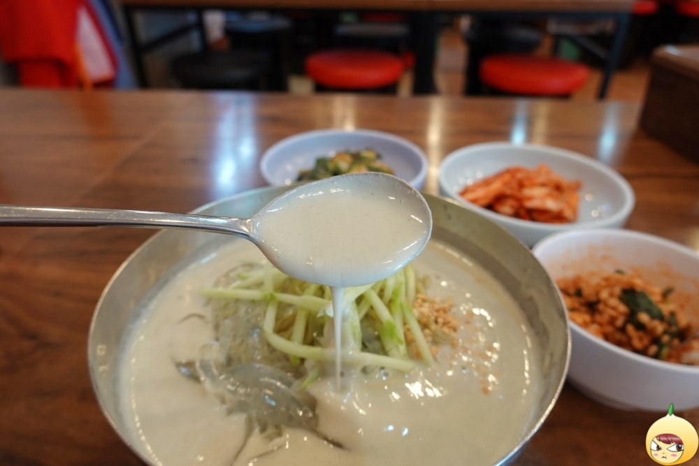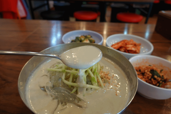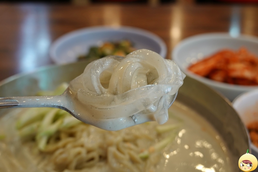 아삭한 오이에 으깬 땅콩이 들어 있고, 국수인듯 국수아닌 무언가도 들어있다. 그리고 콩국수에서 주인공이라 할 수 있는 콩물이 잔뜩 들어있다.