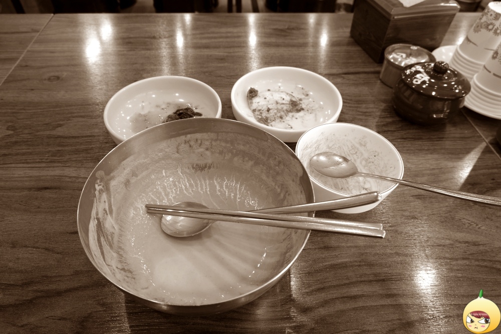 툭툭 끊어질 정도의 되직함은 아니다. 주르르 흐르긴 하나 그렇다고 묽지 않다. 적당하다는 표현이 맞을 거 같다. 숟가락으로 떠먹기보다는 그릇채 들고 마실 수 있는 정도다.
