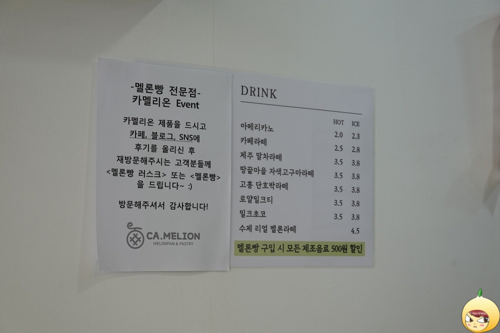 예전에 비해 벽면도 꽉 채워진 거 같다. 후기를 올리고 재방문을 하면, 멜론빵 러스크를 준단다. 아싸~ 담에 가면, 서비스로 러스트를 달라고 해야겠다.