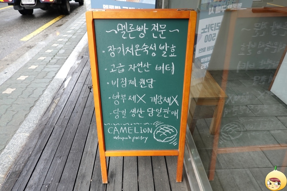오후에 가면 빵이 별로 없을 거 같아서 오전에 갔다. 사실은 제일은행 목동역지점에서 외화통장 만들고 난 후, 걸어서 5분 거리에 카멜리온이 있다는 게 생각이 났다. 멜론빵이 먹고 싶다는 일념하에 발걸음은 자연스럽게 신정역 방향으로 향했다. 반년만에 왔는데, 못보던 배너가 생겼다.