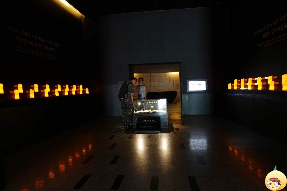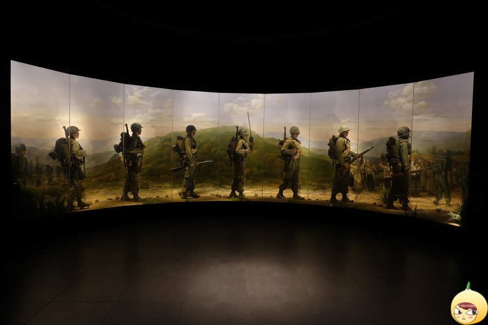전쟁기념관의 진짜는 지금부터라 할 수 있는데, 앞부분을 너무 오래 관람했나보다. 우리나라에서 일어난 전쟁 중 마지막 전쟁이길 바라는 6.25전쟁 전시실이다. 현충일을 앞두고 있어 단체로 온 학생들이 많았고, 군인이 되면 전쟁기념관은 필수코스인 듯 군인 관람객도 많았다. 외국인, 초등학생, 대학생 그리고 군인까지 이들은 전쟁기념관을 어떻게 받아들일까? 어린 친구들은 게임 캐릭터를 본 듯 전시관을 즐겁게 뛰어다니기 바쁘고, 해설사와 함께 다니는 이들은 다나까로 대답하기 바쁘다. 외국인은 영상물 하나하나 놓치지 않고 꼼꼼하게 바라본다. 어린 친구들처럼 전쟁을 그저 게임 속 배경으로 받아들이는 참 좋으련만, 보는내내 아프고 힘들었다.