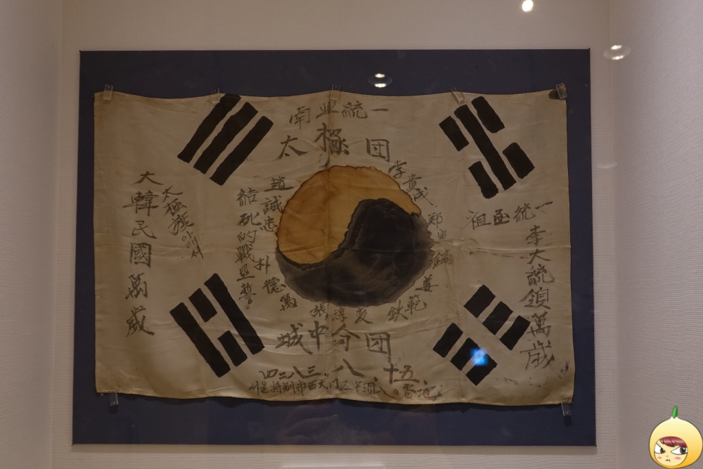 독립군 부대가 병영문에 게양했던 부대기다. 전체를 1/4로 나누었을 때, 좌상 부분에는 노란색과 빨간색, 우상 부분에는 태극기, 아래 부분은 녹색으로 채색되어 있다.