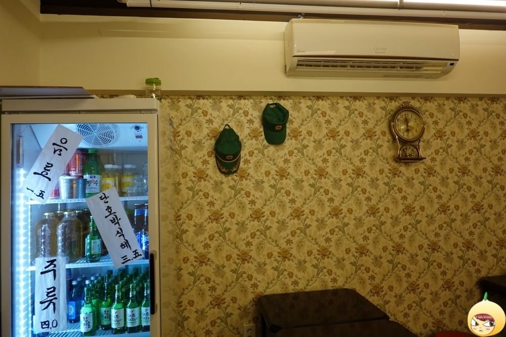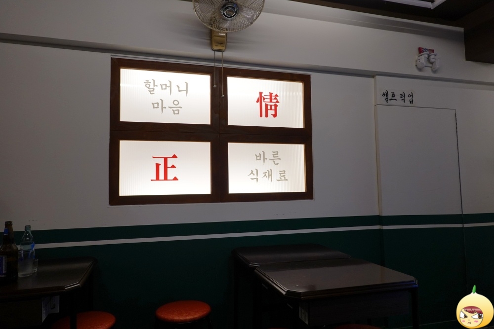 지난번에 비해 뭔가 달라진 느낌, 숨은찾기 시작이다. 우선 창문이 달라졌다. 휑했는데, 할머니의 마음과 바른 식재료라는 글이 적혀있다. 그런데 저 창문, 실제 창문이 아니다. 다 먹고 나오니 해가 졌는데, 창문은 여전히 대낮같았기 때문이다. 새마을 모자와 웬지 태엽을 감아야 할 거 같은 시계는 그대로다.
