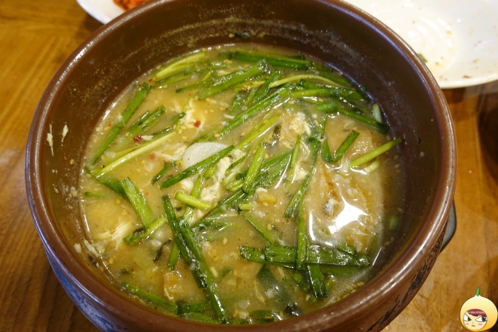 원래는 본연의 맛을 추구하므로, 반찬을 올려서 먹지 섞지 않았다. 하지만 돼지국밥을 먹을때 부추무침을 넣어서 먹듯 따라해봤다. 뜨거운 국물에 부추가 살짝 익으니, 풍미에 맛까지 더 진해졌다.
