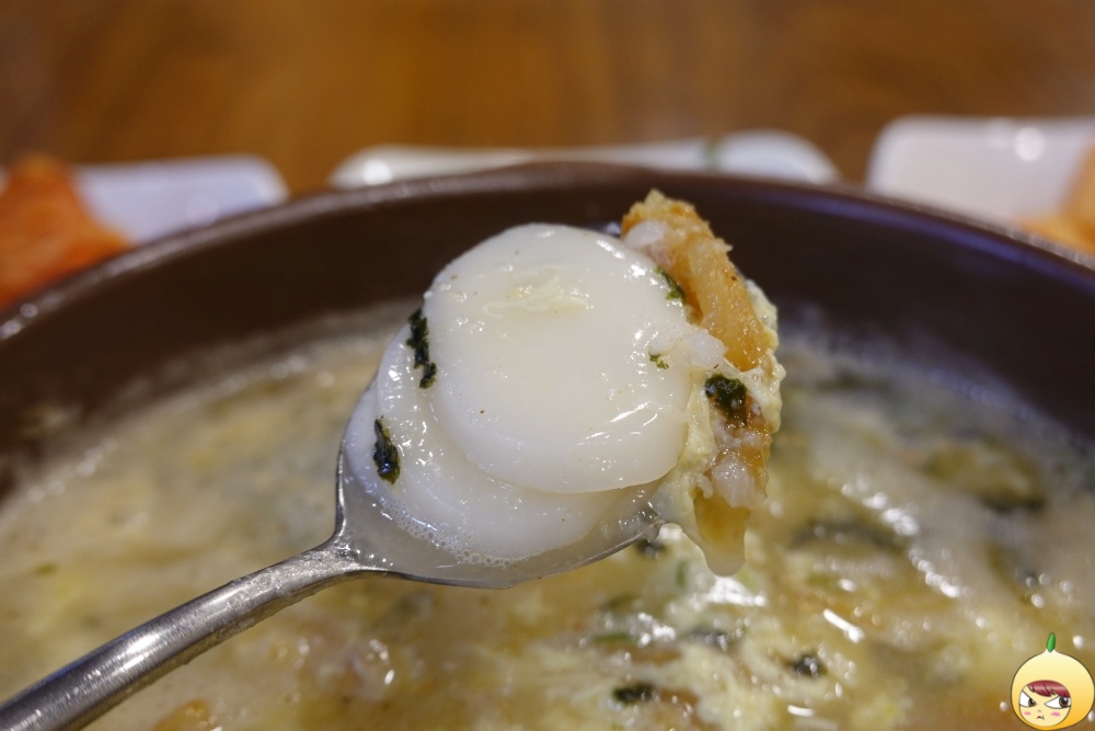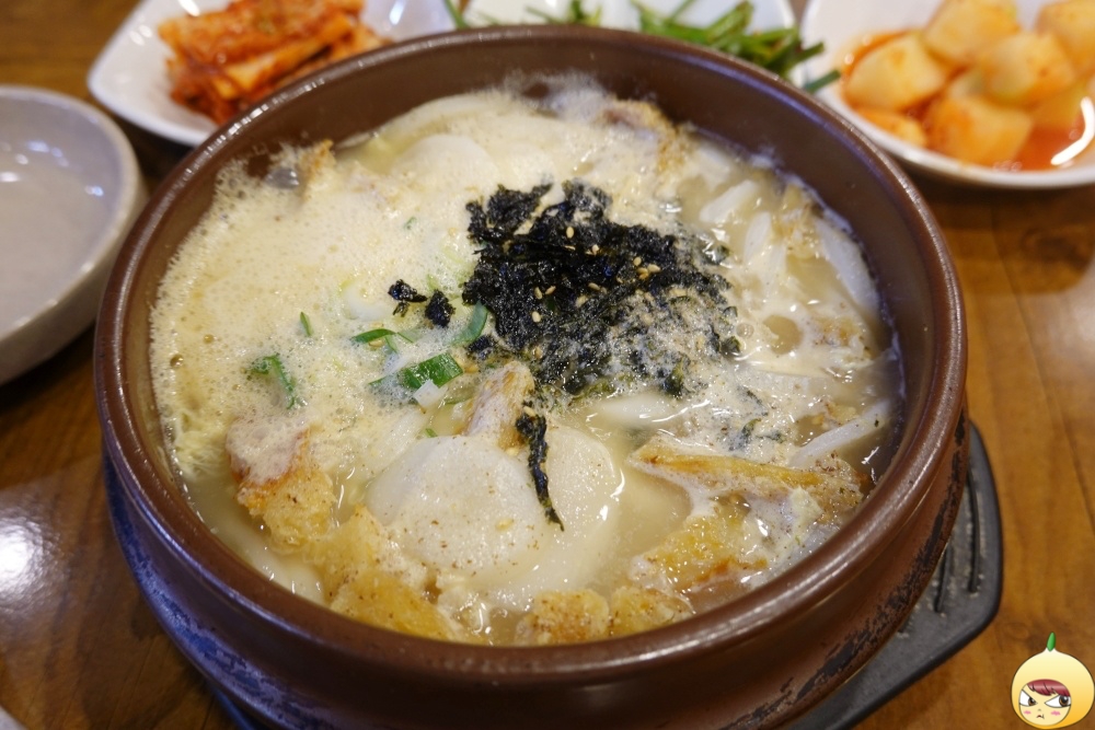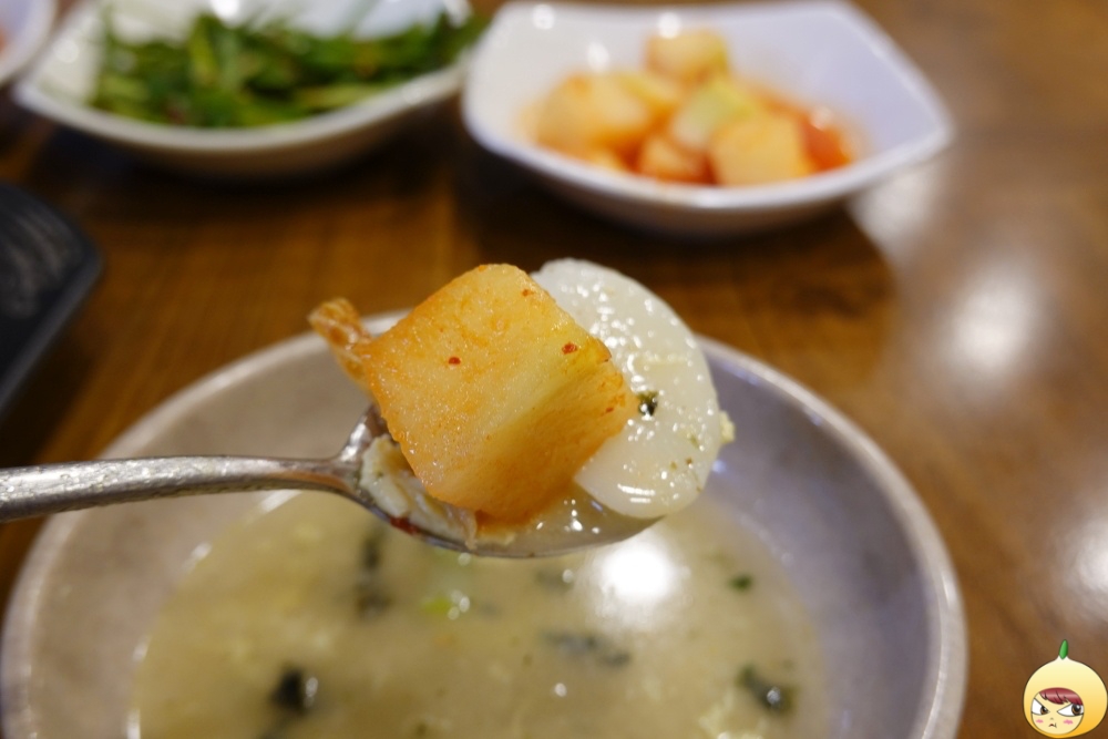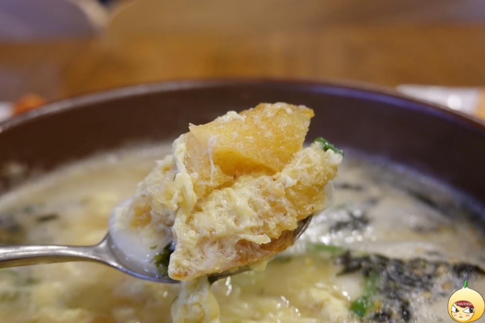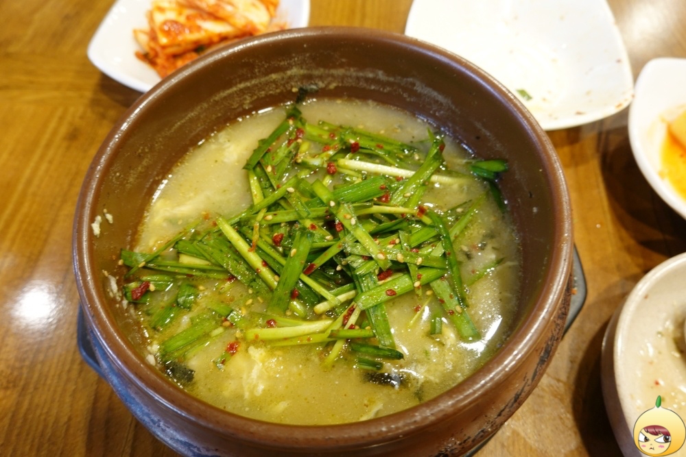 뚝배기이다보니, 바로 나왔을때는 보글보글 끓고있는 상태였다. 이때 움짤용으로 연속해서 찍었어야 했는데 ,항공샷을 찍느나 순간을 놓쳤다. 맑고 깔끔하고 담백한 국물인데, 들깨가루가 있어 구수함 추가다.