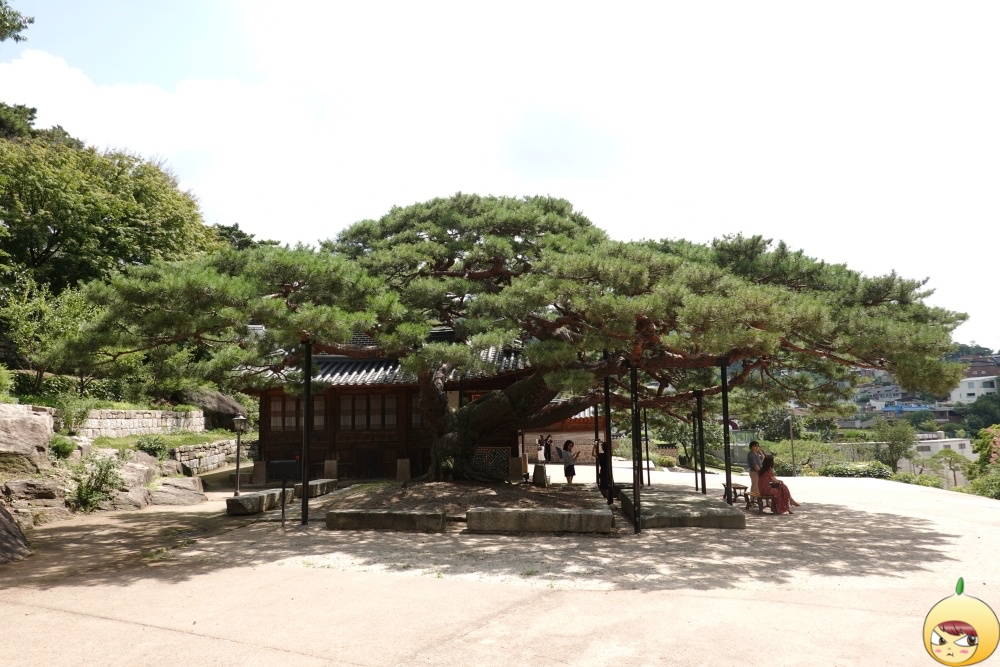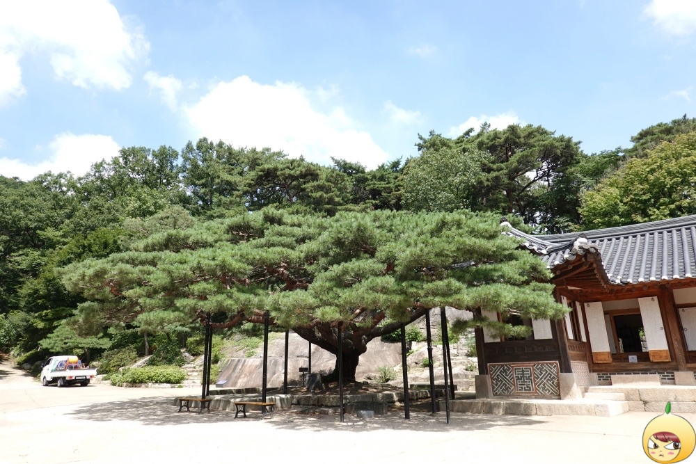 사랑채 옆에는 위풍당당한 소나무 한그루가 있다. 이름은 천세송으로 보호수로 지정된 노송이다. 여름답게 햇살은 엄청 뜨겁지만, 너른 그늘 품에 안기니 시원하도다. 열대야로 인해 부족해진 잠을 보충하고 싶을정도로 시원하고 달콤한 그늘이다.