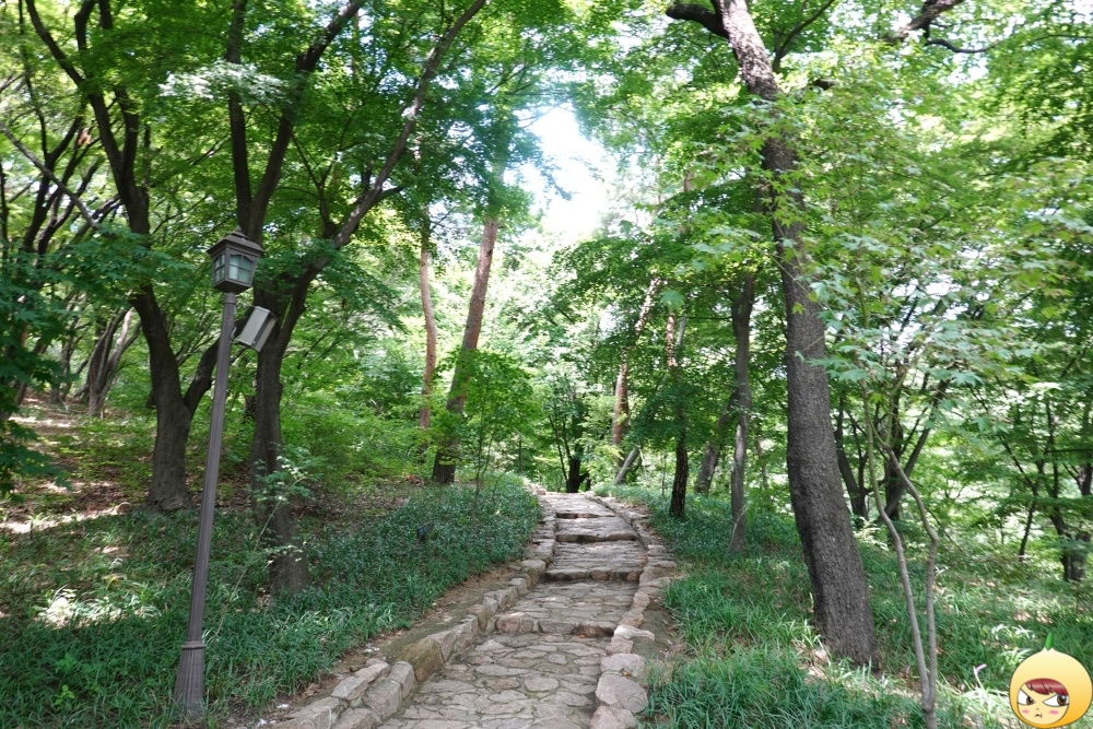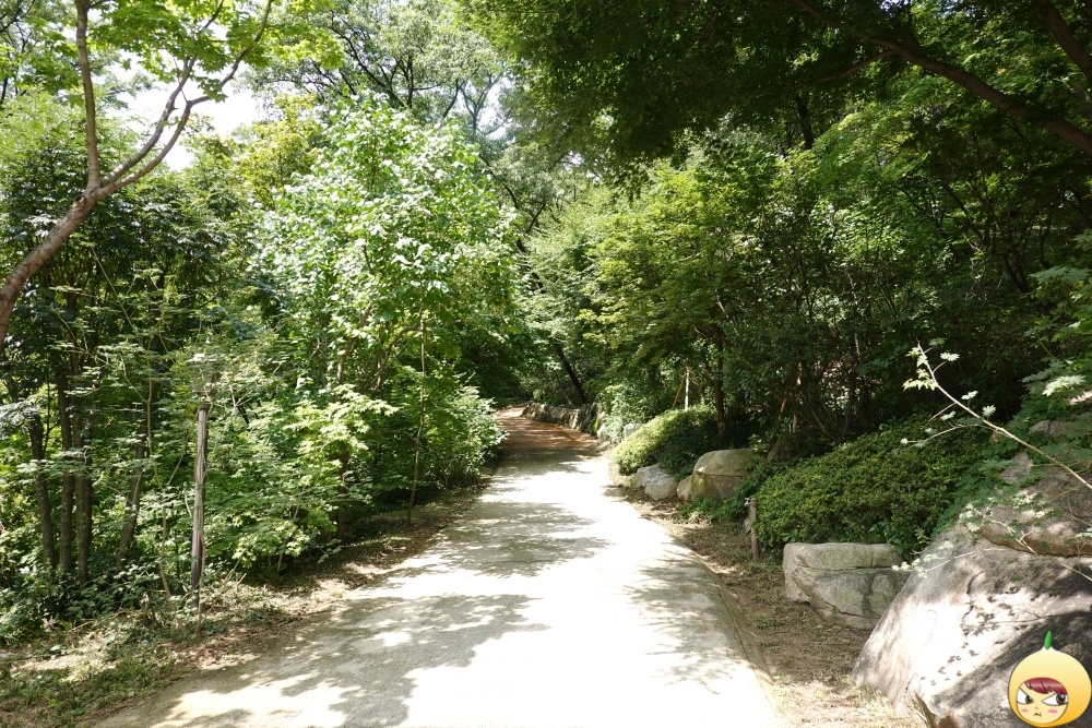 왔던 길로 다시 내려 가도 되건만, 다른 길을 선택했다. 물은 품은 길이라는데, 울창한 나무가 햇살을 막아주니 양산을 접고 편하게 다닐 수 있었지만, 아뿔사~ 이렇게 습한 곳에는 어김없이 모기가 나타는데 그걸 미쳐 생각하지 못했다. 시원하고 한적한 오솔길을 걸어서 좋았지만, 턱, 손등, 팔꿈치 등 4곳을 모기님에게 내주었다. 얼마나 많이 드셨는지, 사진을 찍고 있는데 뒤뚱하면서 힘겹게 날아가는 그분을 목격했다. 집모기와 달리 산모기는 강하다고 하더니, 다음날 연신 물파스를 발라도 여전히 퉁퉁 부어있다. 이때만 해도 이렇게 될줄 모르고, 그저 덥지 않아 좋구나 하면서 앞으로 나갔다.