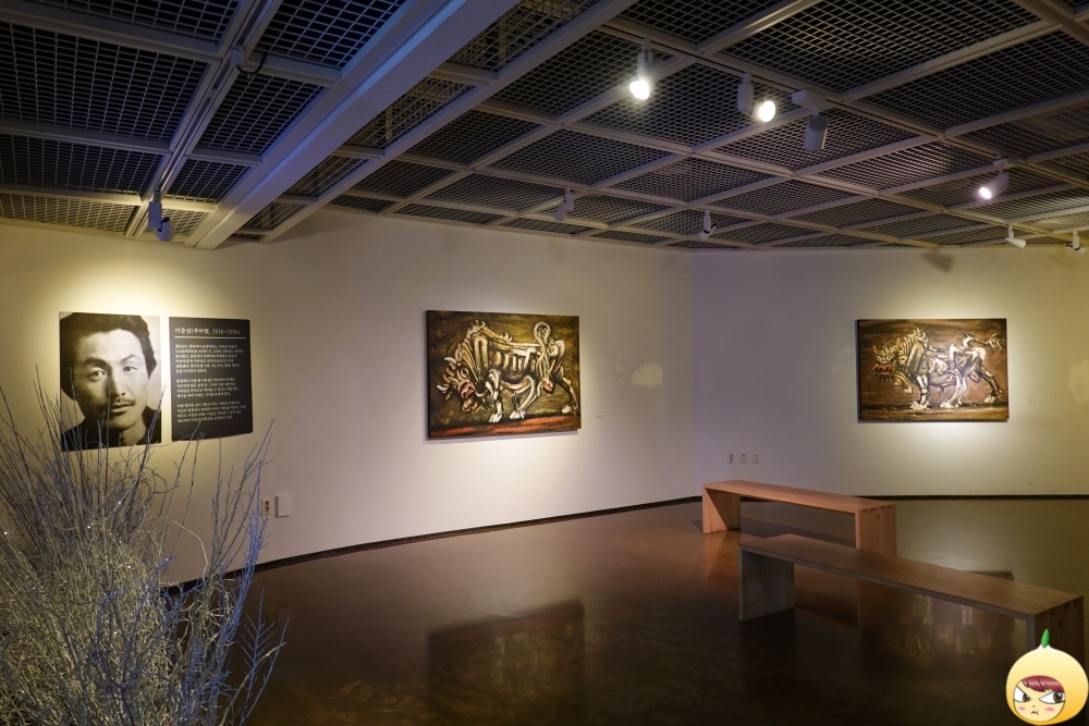 다방은 다방인데 차를 마실 수 없는 다방이다. 더위를 피하기 위해 일찍 출발을 하다보니, 첫번째 관람객이 됐다. 오픈 전인 줄 알았는데, 2시간 후에는 드라마 세트장처럼 여전히 썰렁했다. 뉴트로 갬성(?)을 자극하기 위해 꾸며놓은 거 같다. 다방 옆에 작은 공간에는 이중섭의 대표작 황소가 전시되어 있다.