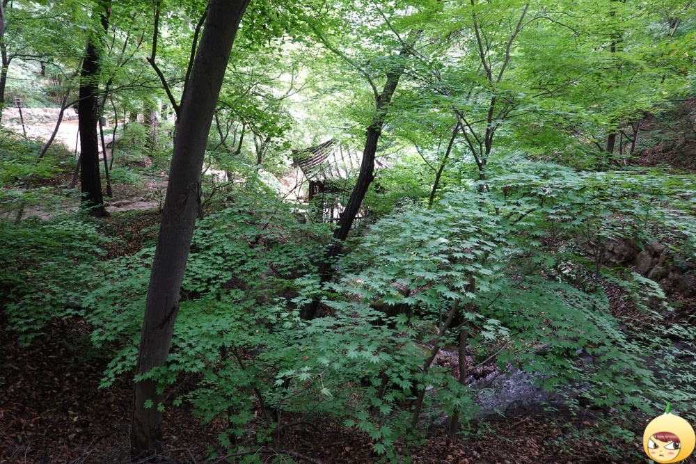 시원함을 넘어 으시시한 느낌이 들었지만, 정자 안까지 들어갔다. 정자 아래로 물이 흐르는데 양은 그리 많지 않다. 그런데도 다른 곳과 달리 동굴 속에 온듯 한기가 느껴졌다. 멋진 풍경도 좋지만, 담력훈련은 싫다.