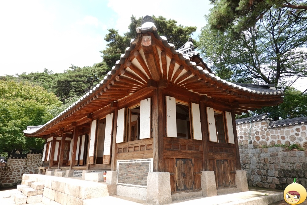 사랑채 뒤로 고종이 묵었다는 별채가 보이는데 올라가는 길이 안보인다. 그러다 삼계동각자 옆에 있는 작은 돌계단으로 누군가 올라간다. 혹시나 싶어 따라올라가니 별채로 들어가는 작은 문이 나온다. 요렇게 힘들게 별채로 가는 방법도 있지만, 잘 닦여진 길로 가는 방법도 있다.
