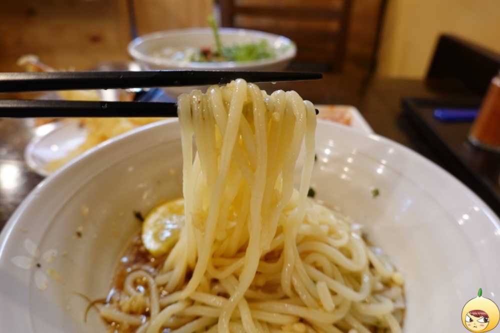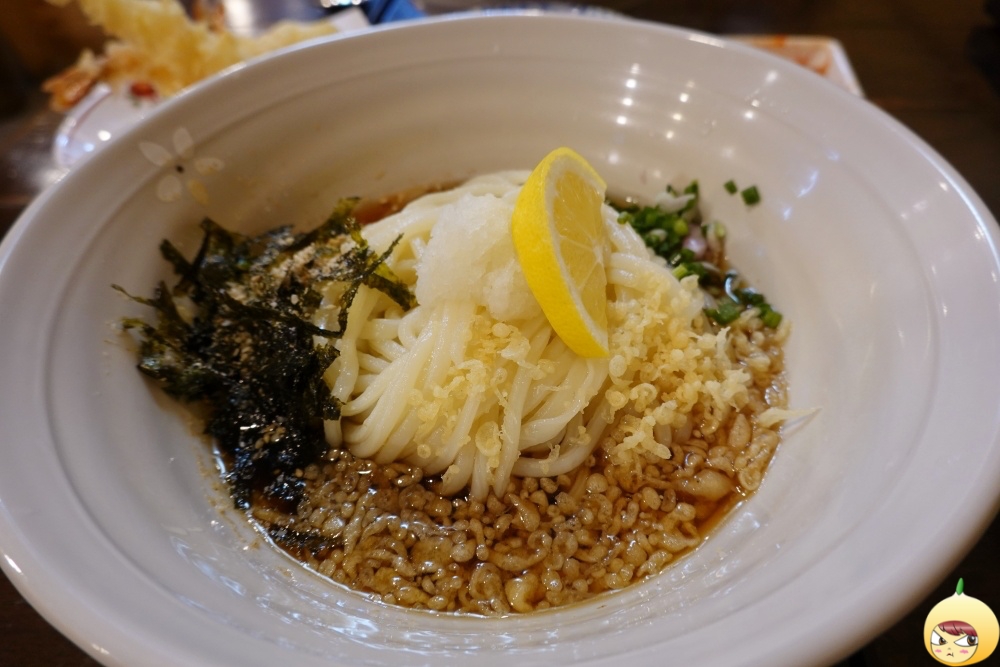 비빔우동(국수)이라 하면 빨간맛이 연상되지만, 이집은 간장이 베이스다. 간무와 김가루, 쪽파 그리고 튀김부스러기가 고명으로 올라가 있다. 여기서 잠깐, 별맛 없을 거 같은 튀김부스러기는 냉우동을 더 고소하게 만드는 엄청난 씬스틸러다. 비빔답게 잘 섞이도록 비비면 된다. 시원한 우동이니 후~하고 불 필요없이, 바로 먹으면 된다. 국물이 없으니 뭔가 빠진 듯 서운할 거 같지만, 면발이 일당백 아니 일당천이다. 기계로 뽑은 면발이 맞나 싶을만큼 저세상(?) 쫄깃함이다. 여기에 간장이 갖고 있는 감칠맛과 튀김부스러기의 고소함이 더해져 젓가락질을 멈출 수가 없다.