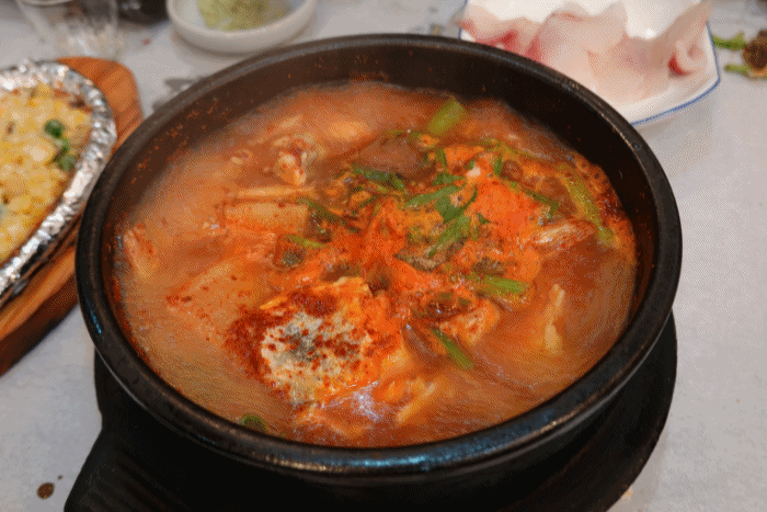 살짝 아쉬웠던 매운탕, 국물 한입 먹고 5분만 더 끓였으면 좋았을텐데 했다. 펄펄 끓고 있는 상태로 나왔기에, 남은 회를 샤브샤브처럼 살짝 담궜다가 육질이 단단해지면 바로 건져서 먹었다. 매운탕은 남기더라도, 회는 절대 남기지 않는다.