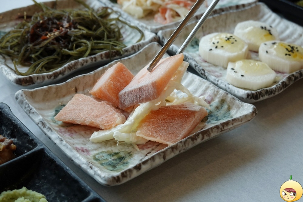 꼬시래기 무침, 샐러드, 유자소스가 올려진 생마 그리고 데친 브로콜리, 셀프 초밥, 깍두기, 동태전. 예약된 룸에 들어가니, 딱 세팅이 되어 있다. 점심을 부실하게 먹었기에, 배가 고팠지만 생마 두조각으로 나름 페이스조절을 했다. 왜냐하면 처음부터 전속력으로 달리면 안되니깐.