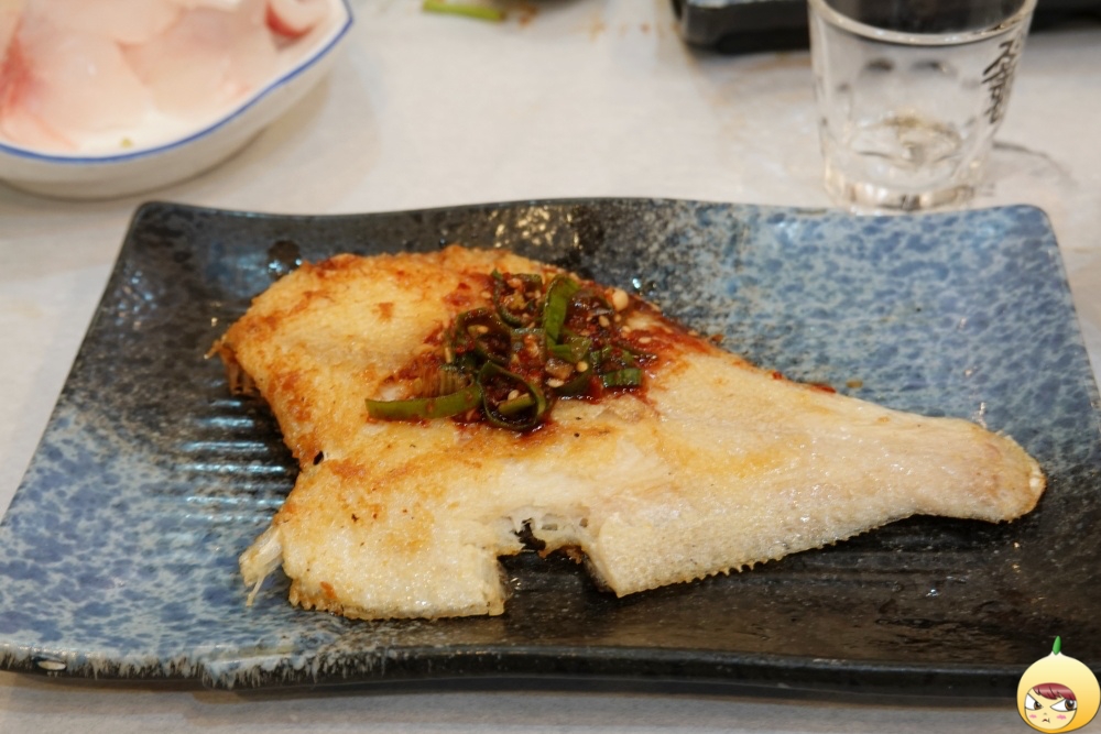 축구 경기처럼, 튀김을 시작으로 곁들이 음식 후반전이다. 이중 제일은 단연코 튀김이다. 밥 생각이 간절했던 가자미 구이를 그냥 먹으니 짜다. 그래서 매운탕이 나올때 공깃밥을 주문해, 밥 위에 살포시 올려서 먹었다.