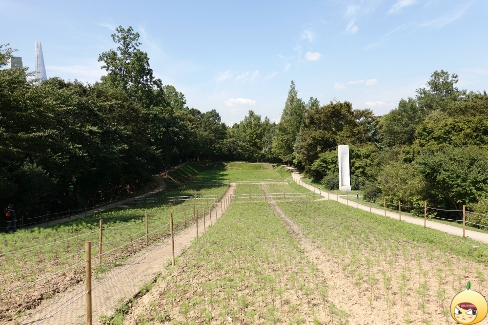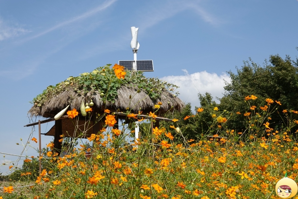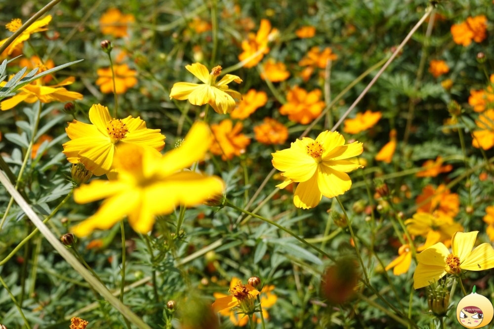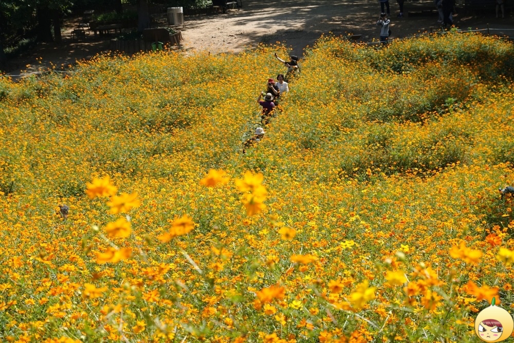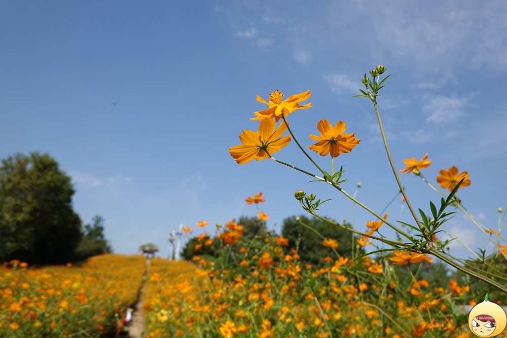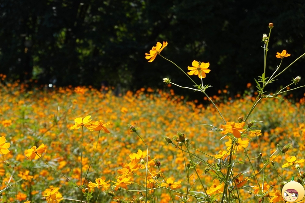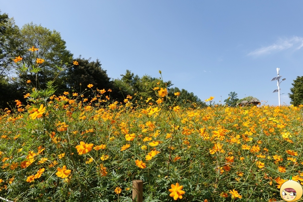 들꽃마루 뒤편에도 대단한 무언가가 있을거라 생각했는데, 음... 안내문에는 센세이션 코스모스라고 우리가 흔히 아는 그 코스모스가 여기에 있단다. 개화시기가 노랑코스모스(7~8월)와 달리 9~10월이라서 아직은 숨어 있나보다. 다 봤다면 더 좋았을테지만, 욕심을 내지 않기로 했다. 노랑 물결만으로도 행복했으니깐.