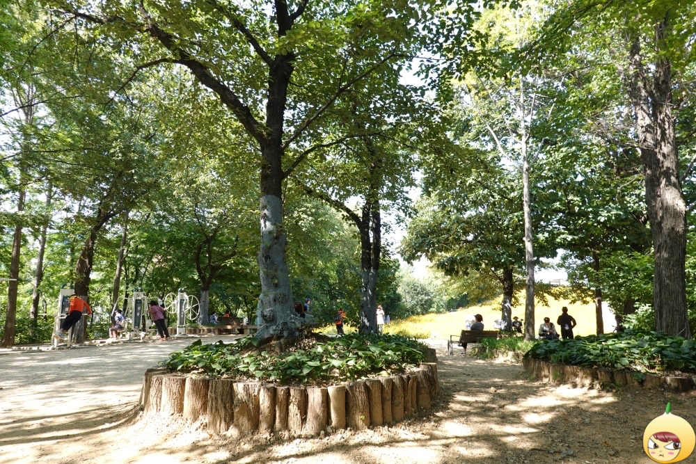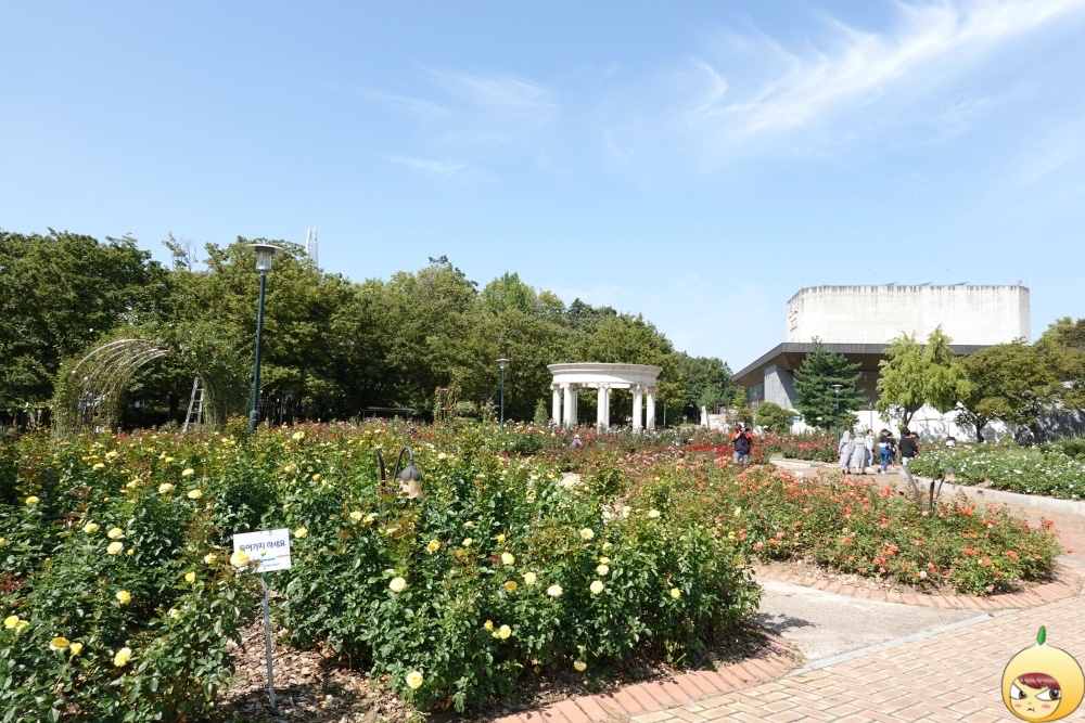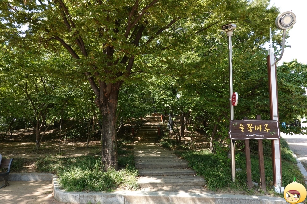 봄에는 장미, 가을에는 코스모스다. 목동역에서 방이역까지 한시간 정도 지하철을 타고 충분히 올만 하다. 솔직히 집에서 출발할때는 멀다고 투덜투덜댔는데, 막상 도착을 하니 투덜은 사라지고 감탄만이 남았다. 들꽃마루를 만나기 5초전, 푸르른 나무들 사이로 노랑노랑 물결이 보인다. 저기로구나!
