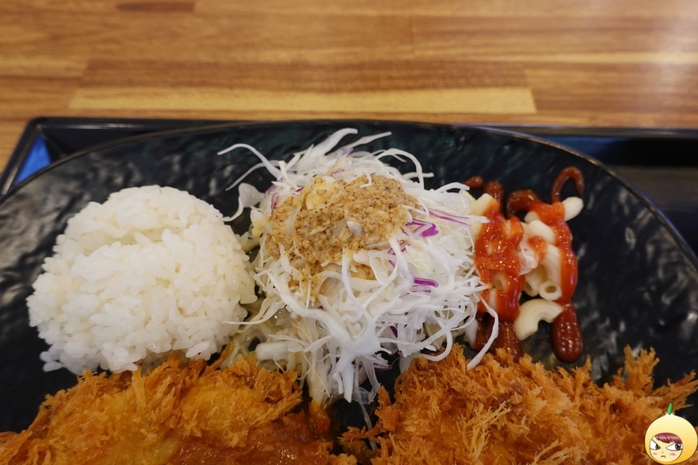 밥과 양배추 샐러드 케첩 옷을 입고 있는 마카로니는 돈가스와 함께 나오고, 국물은 따로 나온다. 밥 양이 적은데도. 돈까스 워낙 두툼해서 밥은 다 먹지 못했다.