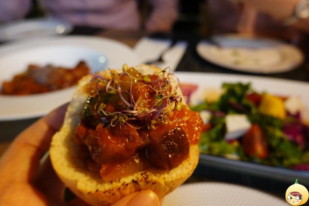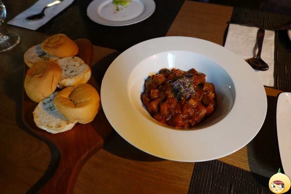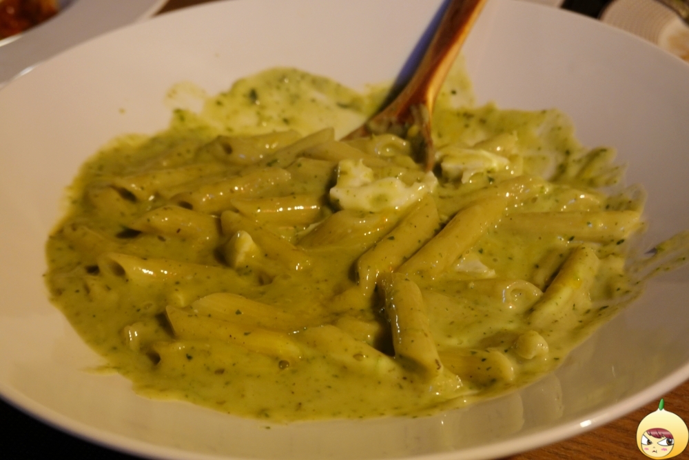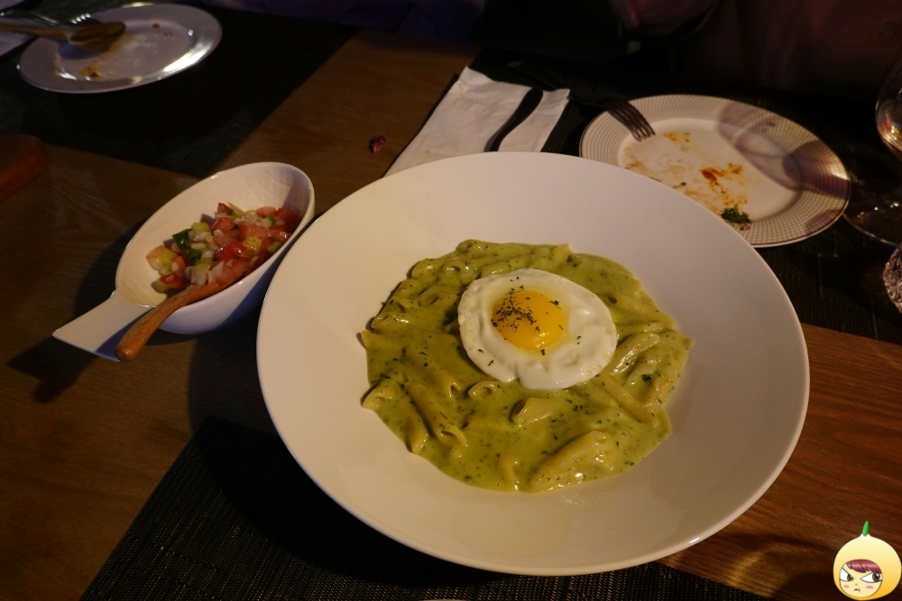 조명이 어두워서 색상이 제대로 보이지가 않는다. 녹색인 걸로 보니 아무래도 시금치 크림인 듯 싶다. 반숙 계란후라이가 함께 나오고, 터트려서 파스타에 잘 섞으면 된다. 노른자의 고소함이 더해지니 아니 좋을 수 없다. 그냥 먹어도 좋지만, 염도가 있아 빵과 함께 먹었다. 이날따라 모든 음식이 전반적으로 간이 강했다.