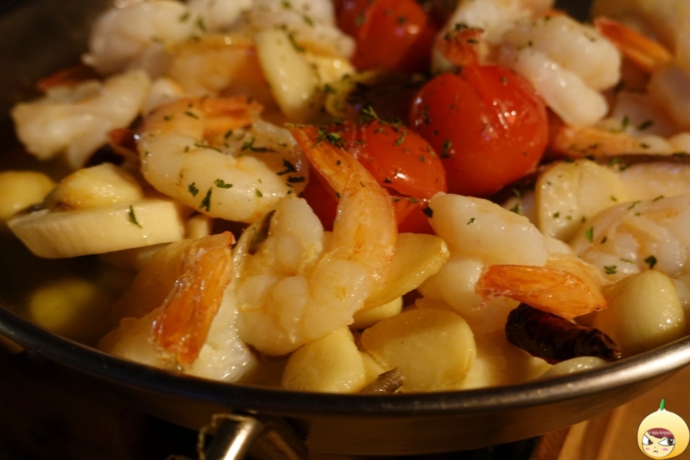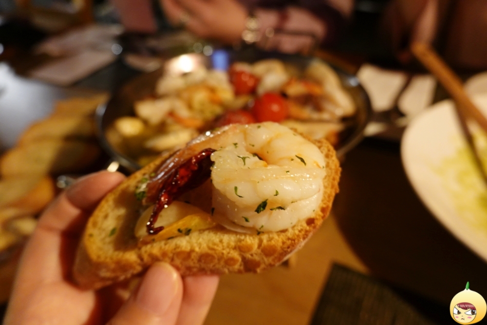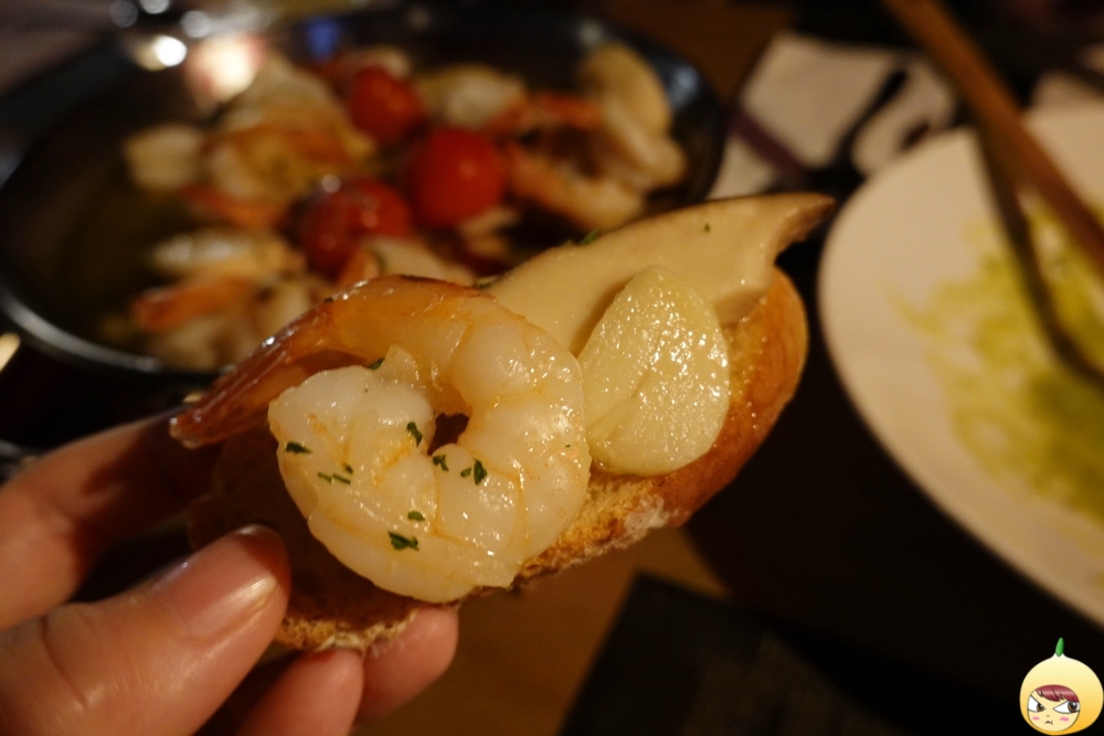 바게트에 오일을 듬뿍 적시고 그 위에 새송이버섯과 마늘 그리고 새우를 올린다. 입 안은 오일로 가득 채워졌지만, 화이트 와인으로 원상복귀. 이 과정을 계속 반복하면 되는데, 중간에 멈춰야 한다.