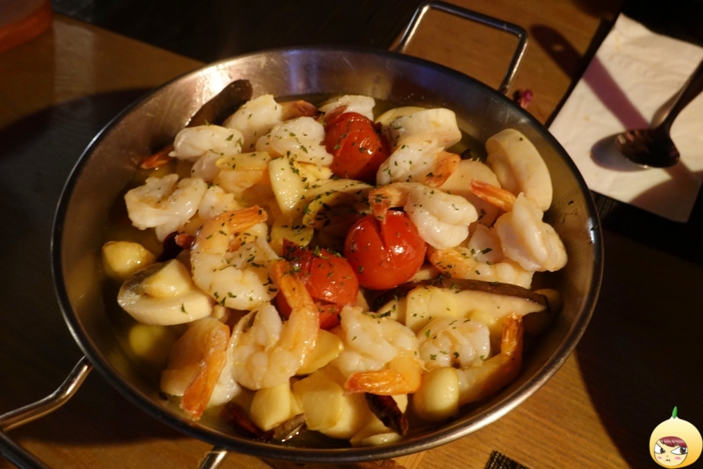 송어의 꿈 감바스는 칵테일 새우는 취급하지 않는다. 딱 봐도 대하급이다. 역대급 감바스는 새우만 봐도 충분히 느껴진다. 여기에 인당 하나씩 토마토와 마늘, 올리브 오일을 듬뿍 머금은 새송이 버섯까지 작년에도 역대급이었는데, 올해는 역역대급이다. 원래 코스에는 스테이크가 나오지만, 감바스로 선택하길 정말정말 잘했다.