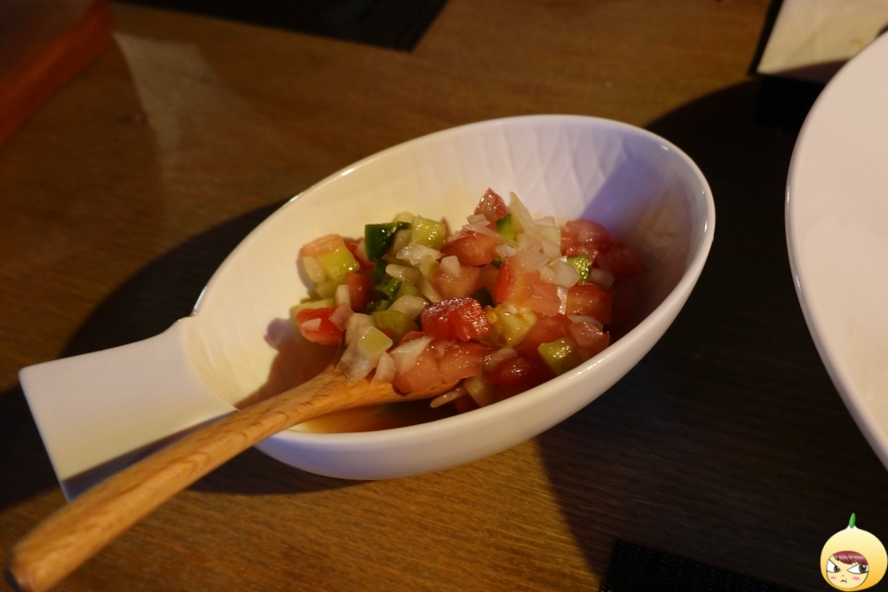 지난번과 동일하게 스테이크대신 감바스를 코스에 넣어달라고 했다. 송어의 꿈은 만원대부터 코스 요리를 먹을 수 있는데, 우리는 인당 만오천원으로 예약을 했다. 시작은 샐러드. 리코타 치즈인 줄 알았는데 두부다. 망고와 토마토, 샐러드 채소 그리고 구운 호박이 들어있다. 소스는 살짝 새콤하니 발사믹인 듯.