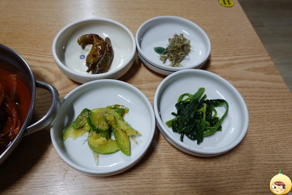 총각김치, 예술적인 파김치, 버섯볶음 그리고 애호박볶음, 시금치나물무침, 멸치볶음, 고추절임무침까지 일곱빛깔 무지개가(반찬)다. 저중에서 베스트를 꼽으면 단연코 파김치와 고추절임무침이다. 그나저나 혼자 먹기에 반찬이 과하다. 가짓수를 줄여도 될 거 같은데, 백반집이라서 그럴 수 없는 거 같다.