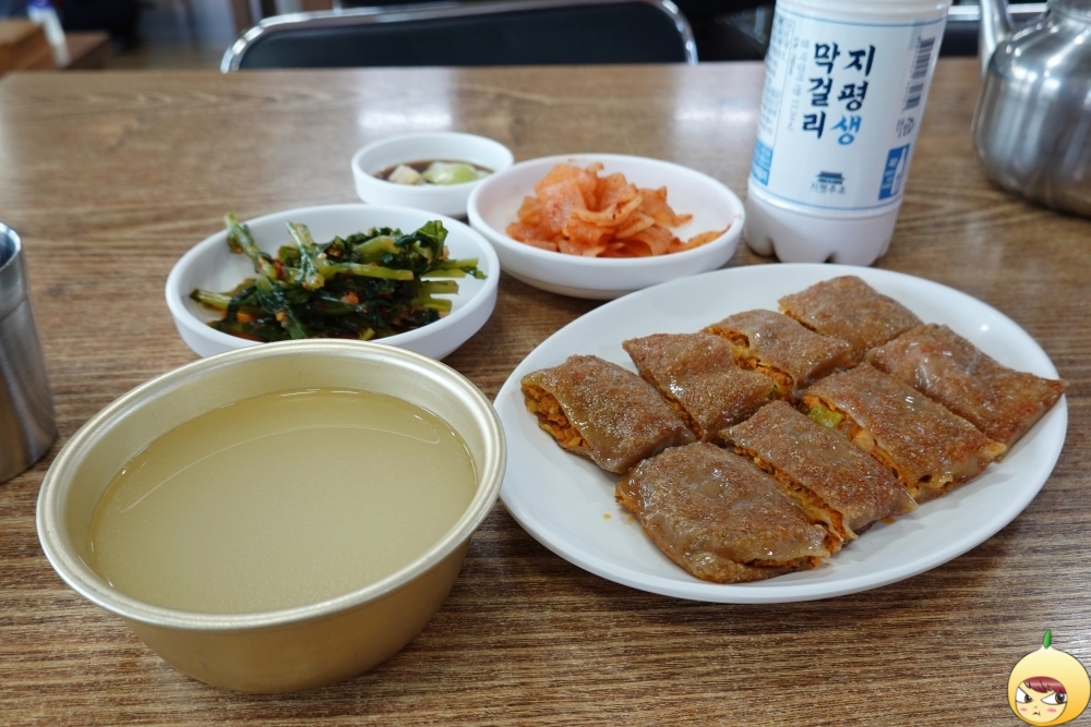 비빔막국수(7,000원)를 주문하면 시원한 육수가 나온단다. 그렇다면 비빔으로 시작해 물로 끝내면 된다. 국수 하나로는 살짝 아쉬울 거 같아, 메밀전병(6,000원) 을 주문했다. 국수에 전병까지 있는데 누룩이가 없으면 허전하다. 고로 지평이를 추가로 주문했다. 햇메밀은 11월부터 나온다고 하기에, 혹시나 하고 물어봤는데 아니란다. 생각해보니, 햇메일과 묵은메밀의 차이 일절 모른다.