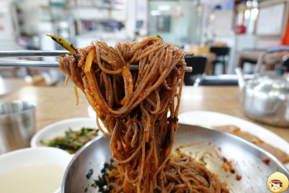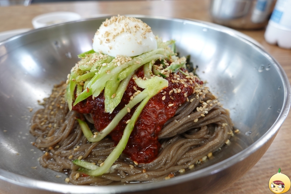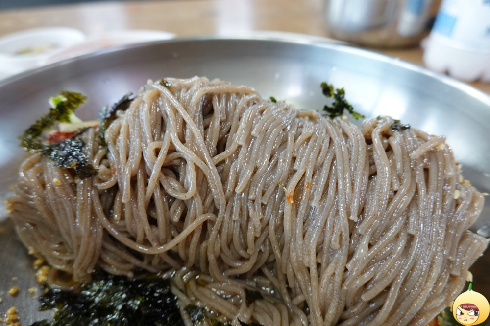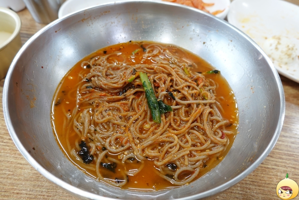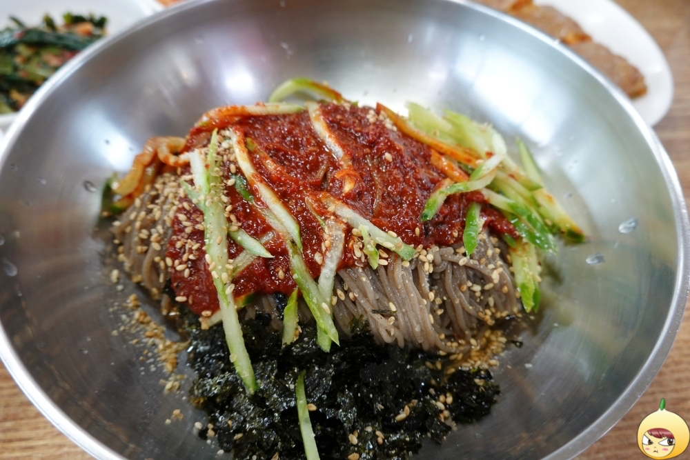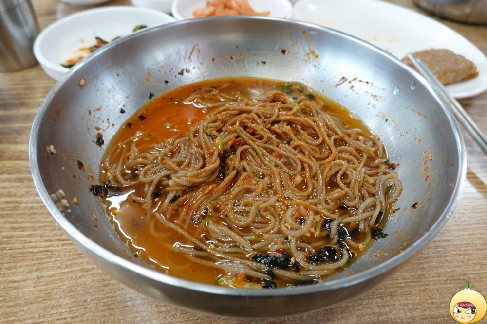 무심하게 툭 끊어지는 면발이 좋다. 양념으로 인해 구수함이 묻힌 듯 싶지만, 강하지 않을뿐 느껴진다. 막국수에 없는 아삭함은 오이가, 고소함은 김이 담당을 하고 있는 거 같지만, 참깨도 톡톡히 한 몫을 해내고 있다.