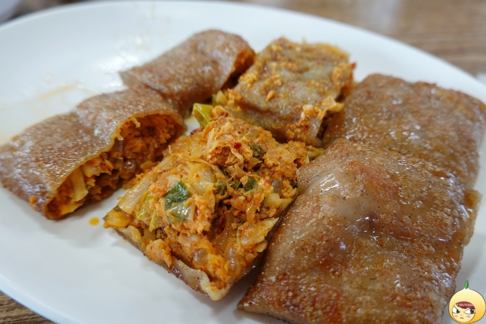 메밀전병이라 쓰고 메밀군만두라고 불러야 할 거 같다. 단순하게 무생채가 들어 있는 줄 알았는데, 완벽한 만두소가 들어 있다. 살짝 고기도 씹히는 거 같고, 내용물이 너무 풍부하다보니 과한 느낌이다. 그래도 기름을 만나 쫀득쫀득한 메밀전은 좋았다.