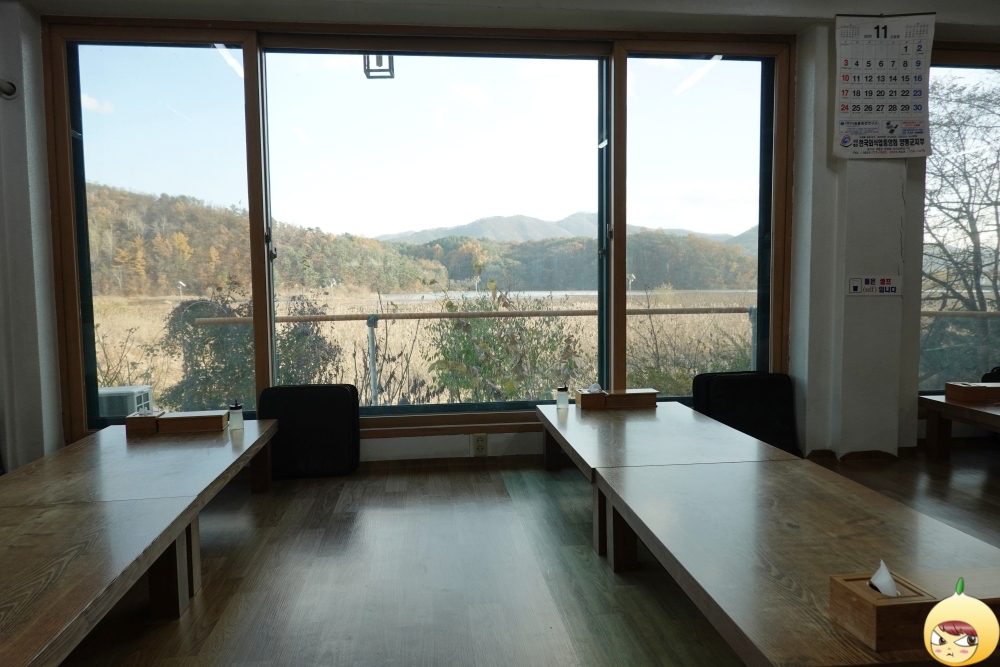 원래는 양수리 전통시장에서 먹으려고 했지만, 장날이 아니다. 멀미를 진정시킬 필요가 있기에, 양수역으로 가다가 중간에 멈췄다. 딱히 갈만한 곳이 없을 거라 여겼는데, 막국수집이 보인다. 더구나 면을 직접 뽑는다고 하니, 구수한 메밀향이 멀미를 잠재울 거 같아 들어갔다. 혹시나 브레이크타임이면 어쩌나 했는데, 영업을 한단다. 양반다리를 하면 멋진 풍경을 제대로 감상할 수 있겠지만, 의자에 앉는게 편하고 좋다.