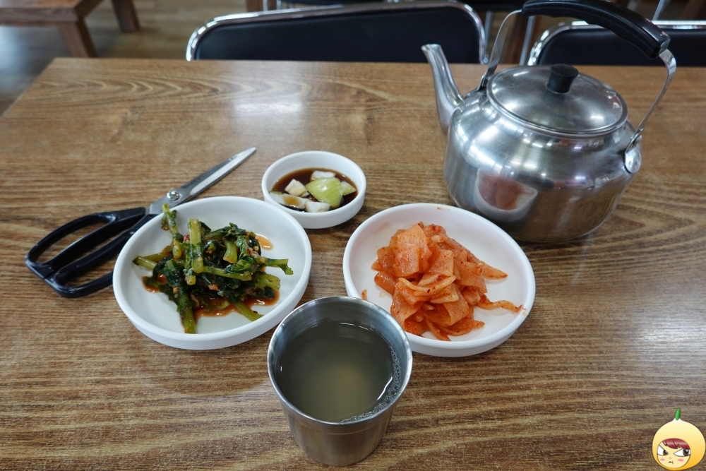 뜨끈한 면수부터 한 컵하고 나니, 기본찬이 나왔다. 열무김치와 무김치 중 개인적으로 열무김치가 더 좋았다. 가위가 나왔지만, 절대 사용하지 않는다. 왜냐하면 면부심이 있으니깐.