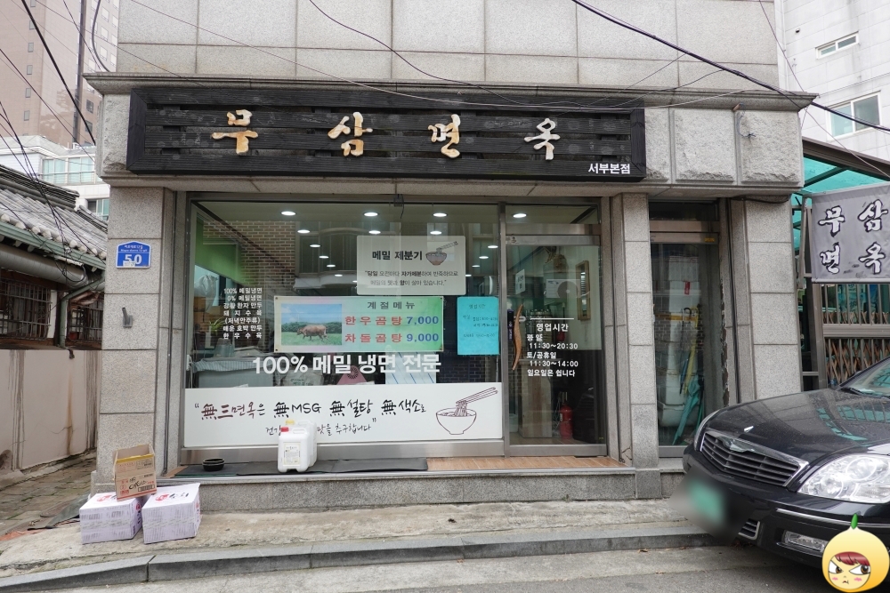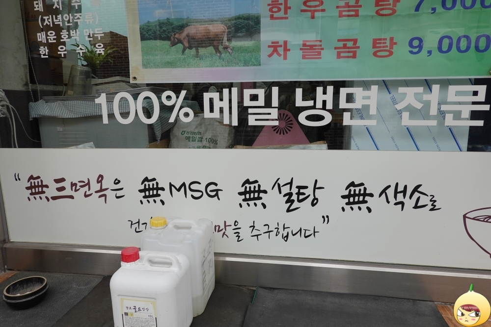 식당이름에서 주인장의 투철한 자부심을 느껴진다. 무MSG, 무설탕, 무색소라서 무삼면옥이란다. 2시 30분부터 5시 30분까지는 브레이크타임이다. 겨울이라 한우곰탕과 차돌곰탕이 있는 거 같지만, 겨울에는 시원한 냉면이 계절메뉴다.