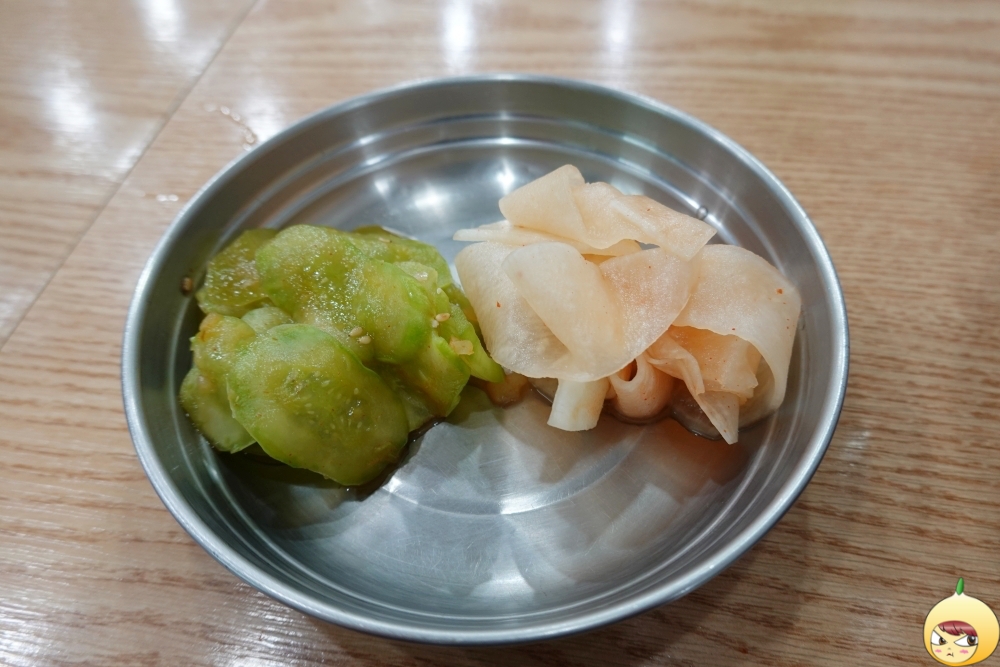 둘 다 반찬인 줄 알았는데, 그릇이 다르다. 왼쪽에 있는 오이절임과 무생채는 반찬이 맞다. 하지만 오른쪽에 있는 건, 반찬이 아니다. 녀석(?)의 정체는 잠시후에... 왜냐하면 엄청난 녀석이니깐.